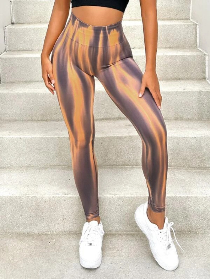 크로스 보더 유럽 및 미국 타이 염료 오로라 엉덩이 원활한 요가 바지 꽉 끼는 스포츠 바지 하이 웨이스트 피트니스 스포츠 바지 피트니스 바지