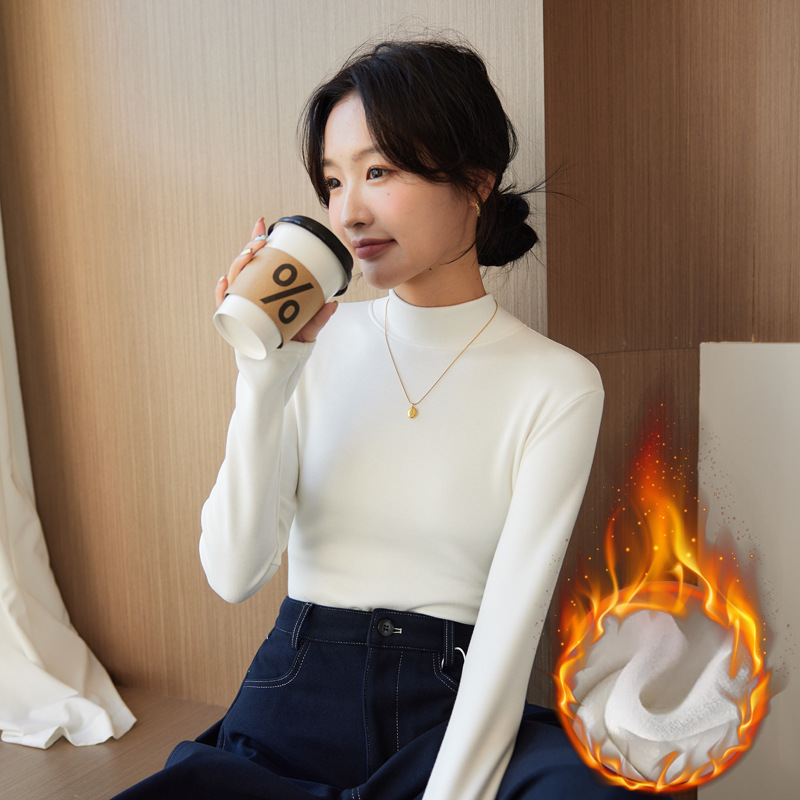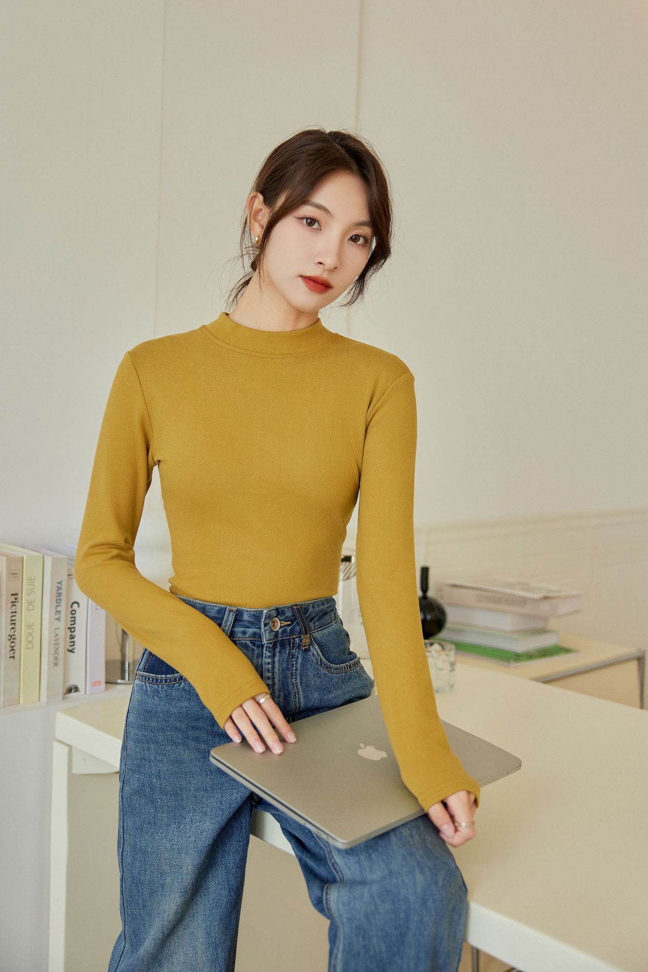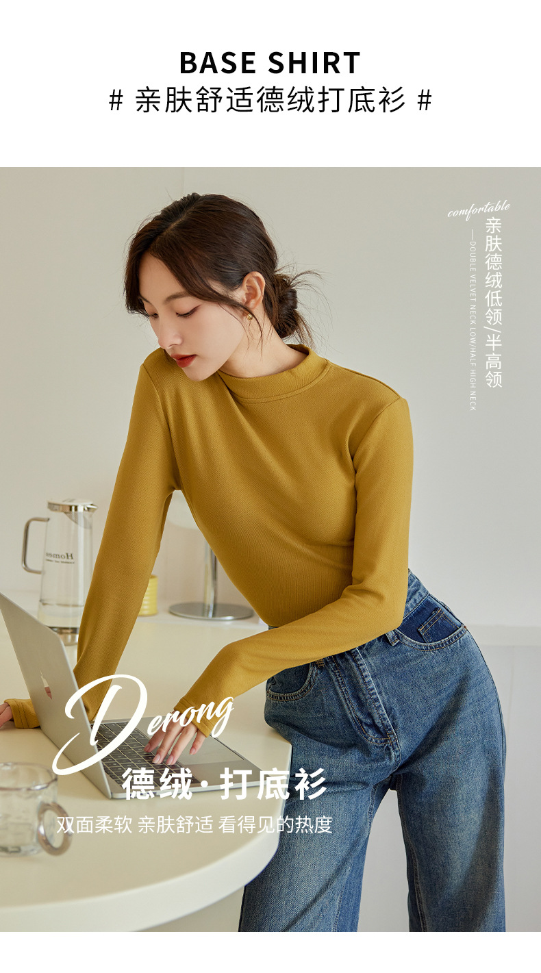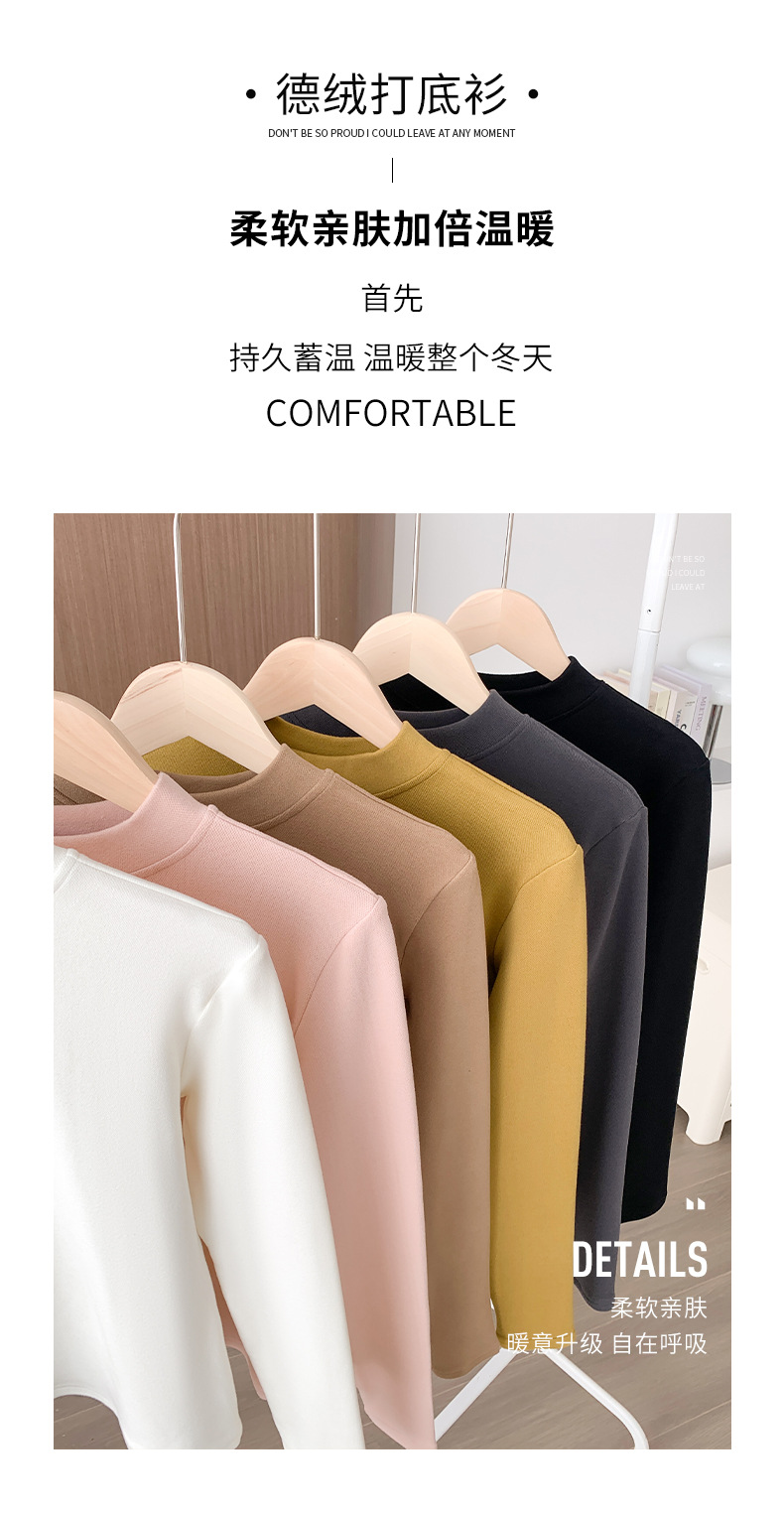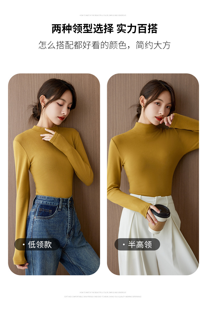 하프 하이 칼라 양면 벨벳 가을과 겨울 바닥 셔츠 여성의 따뜻한 슬림 핏 내부 긴 소매 탑 작은 스탠드 칼라 가을과 겨울 여성 의류스토어 가기