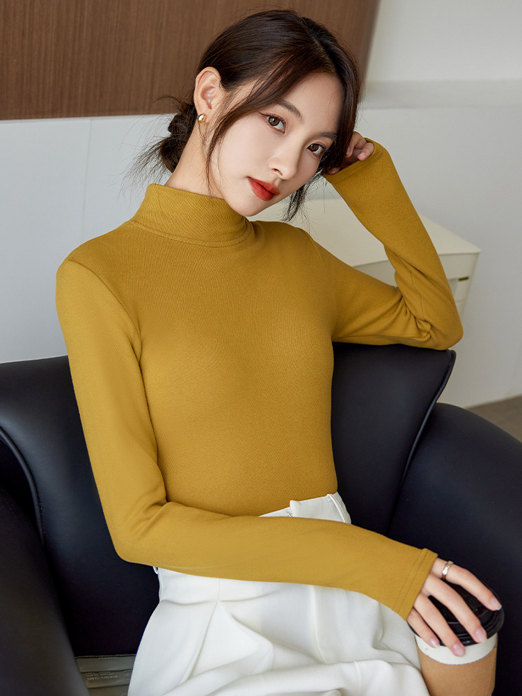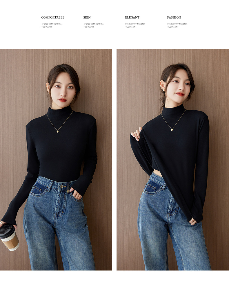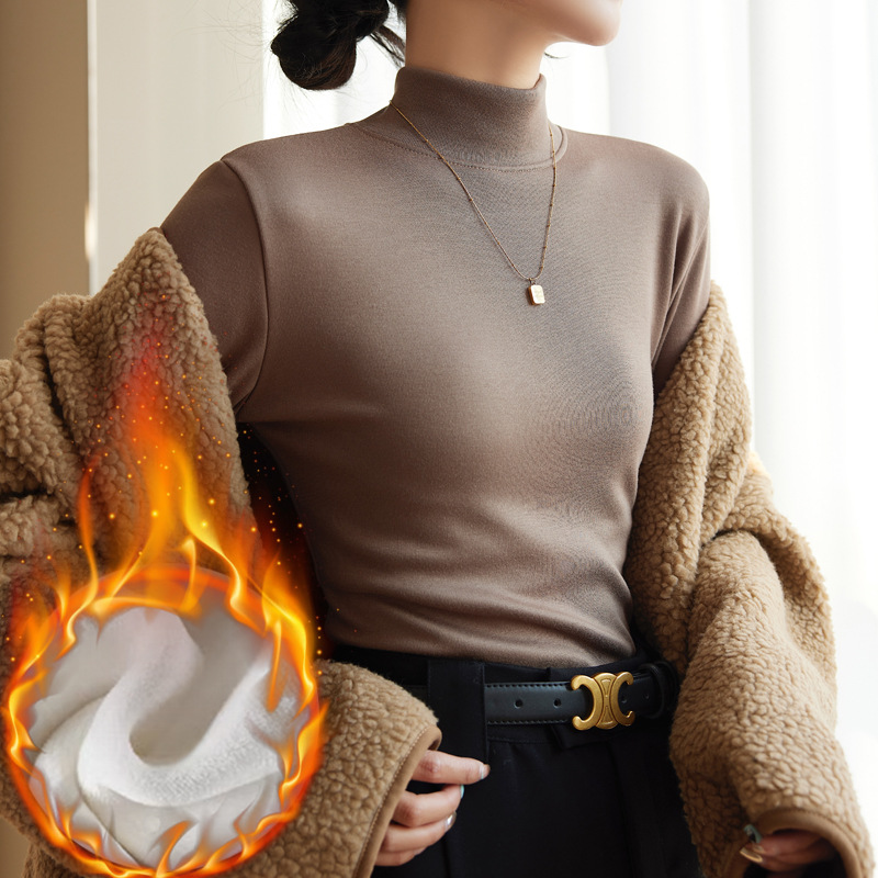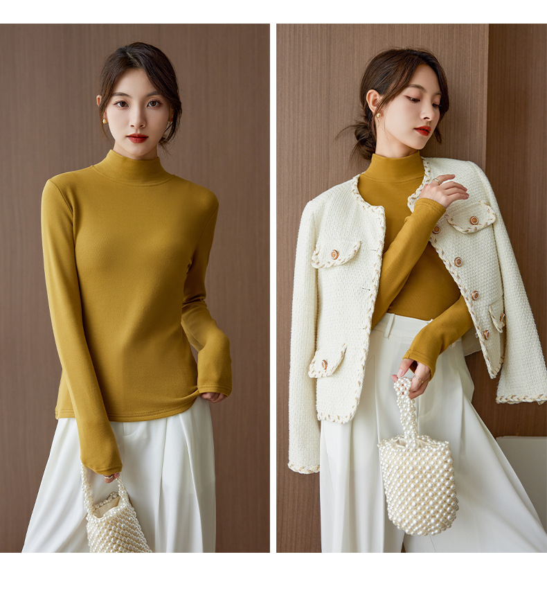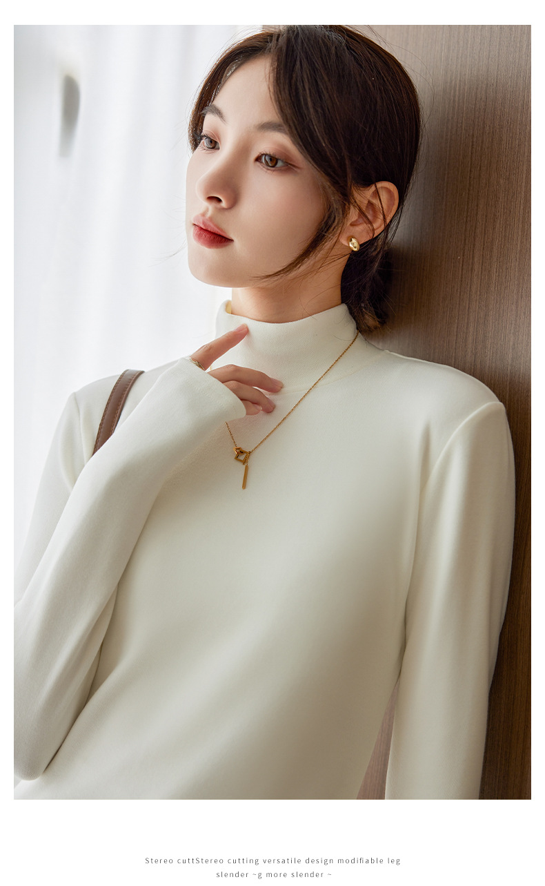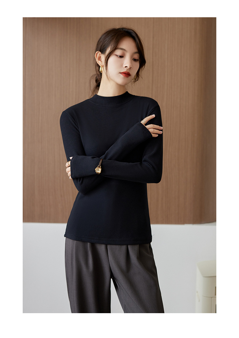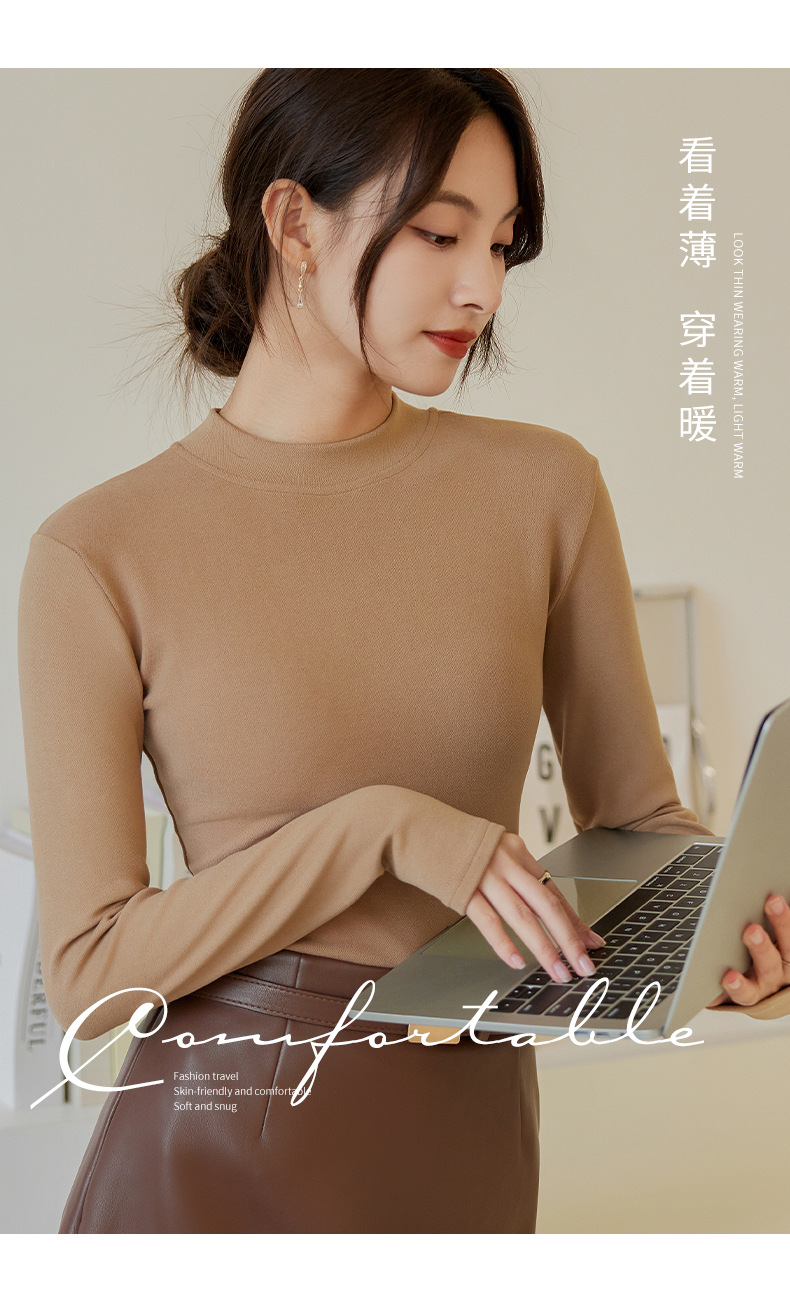 하프 하이 칼라 양면 벨벳 가을과 겨울 바닥 셔츠 여성의 따뜻한 슬림 핏 내부 긴 소매 탑 작은 스탠드 칼라 가을과 겨울 여성 의류스토어 가기