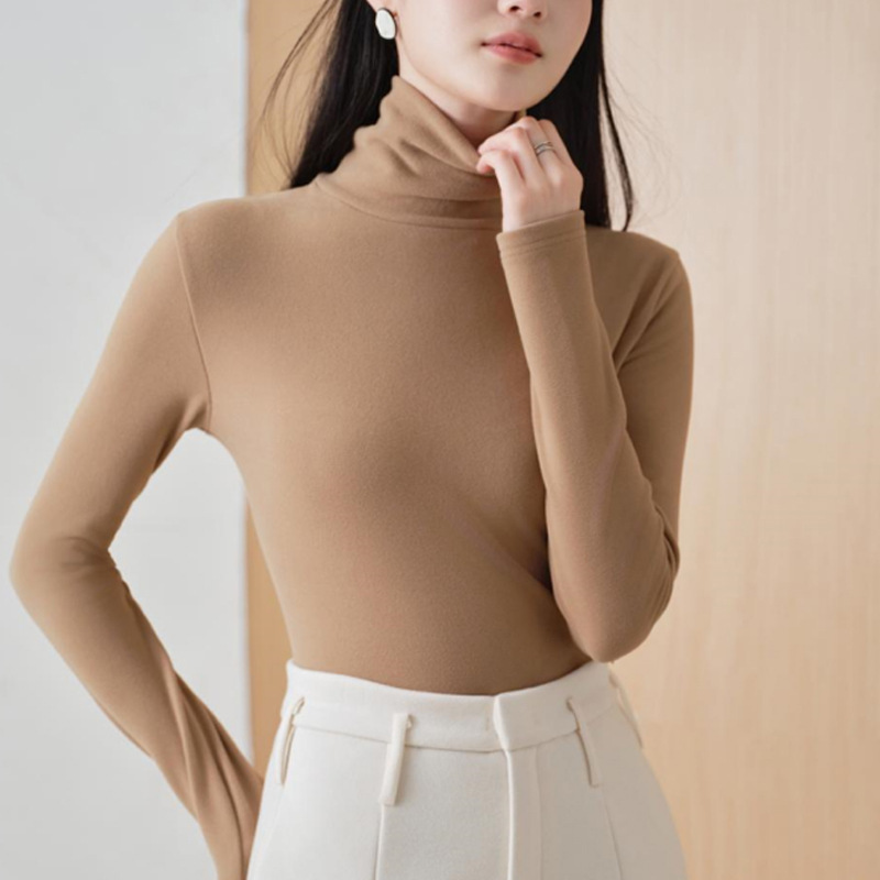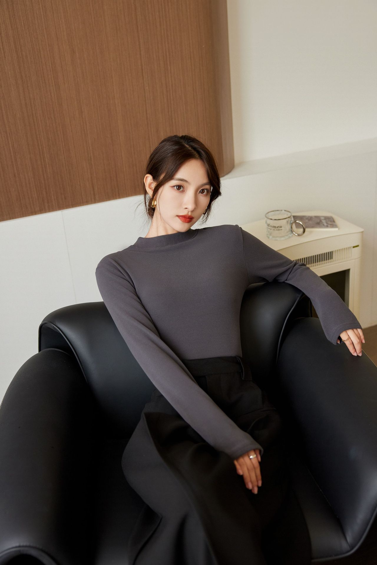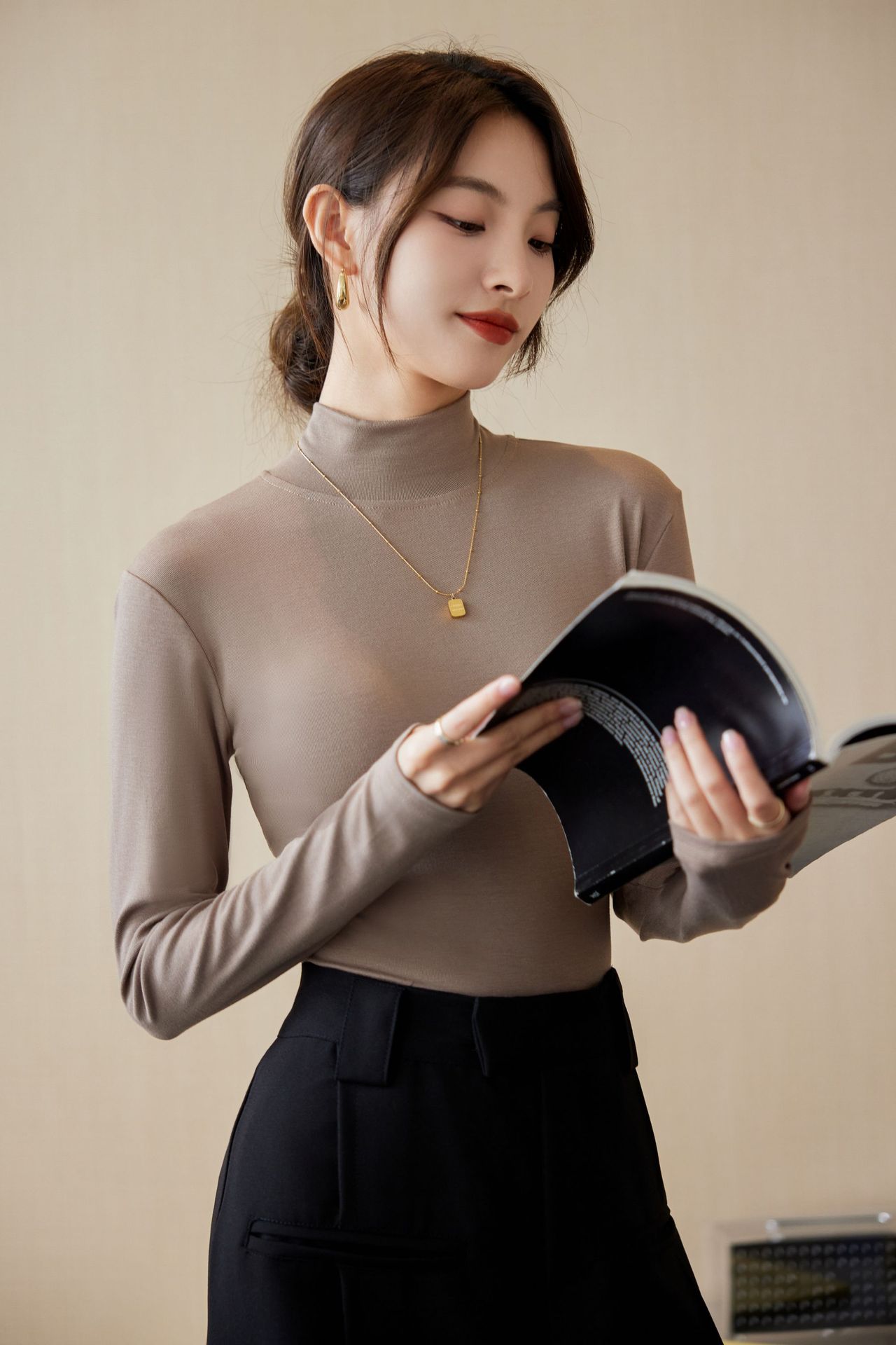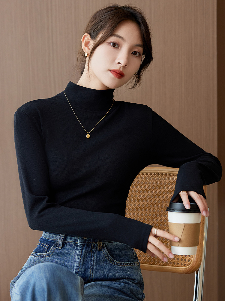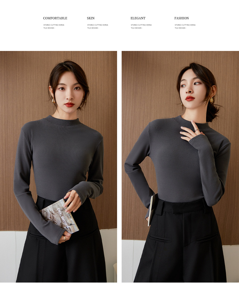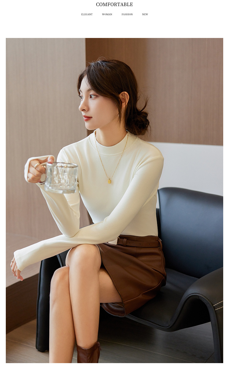 하프 하이 칼라 양면 벨벳 가을과 겨울 바닥 셔츠 여성의 따뜻한 슬림 핏 내부 긴 소매 탑 작은 스탠드 칼라 가을과 겨울 여성 의류스토어 가기