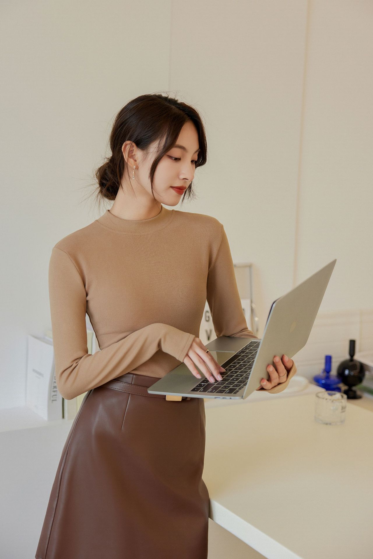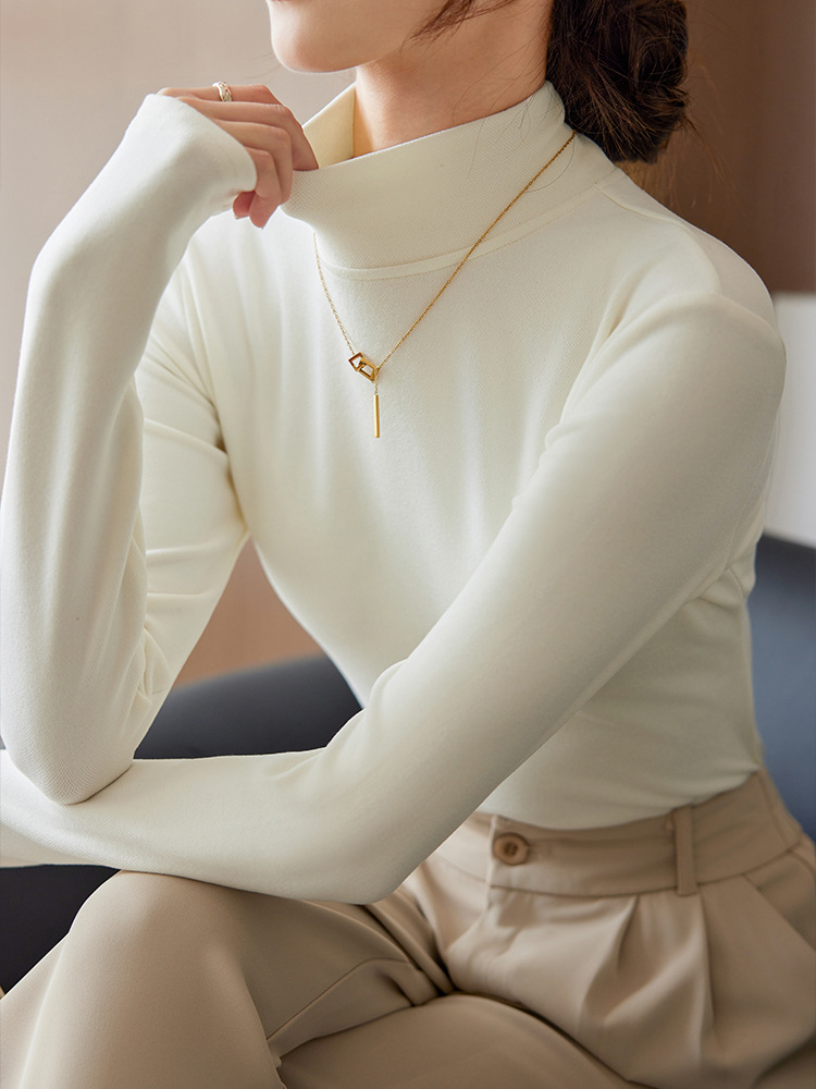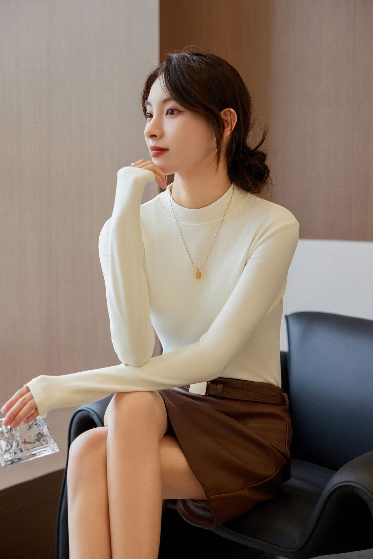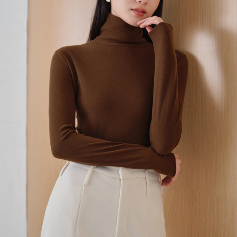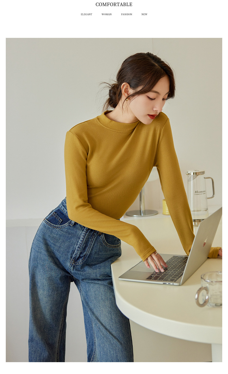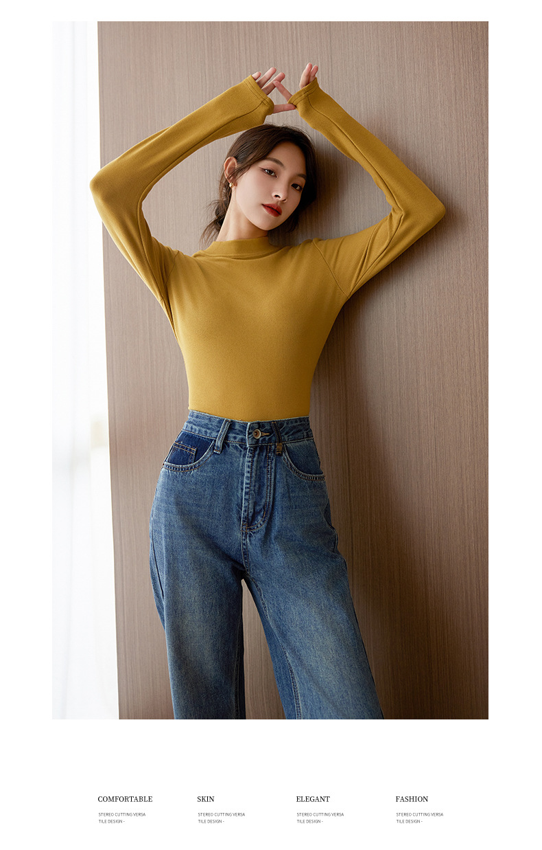 하프 하이 칼라 양면 벨벳 가을과 겨울 바닥 셔츠 여성의 따뜻한 슬림 핏 내부 긴 소매 탑 작은 스탠드 칼라 가을과 겨울 여성 의류스토어 가기