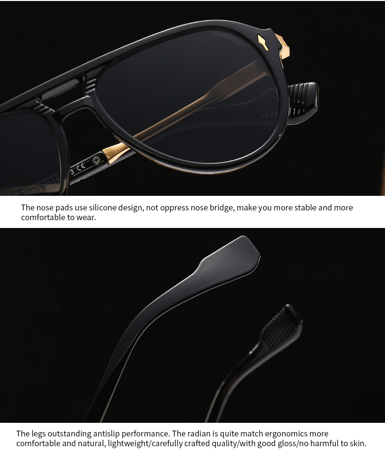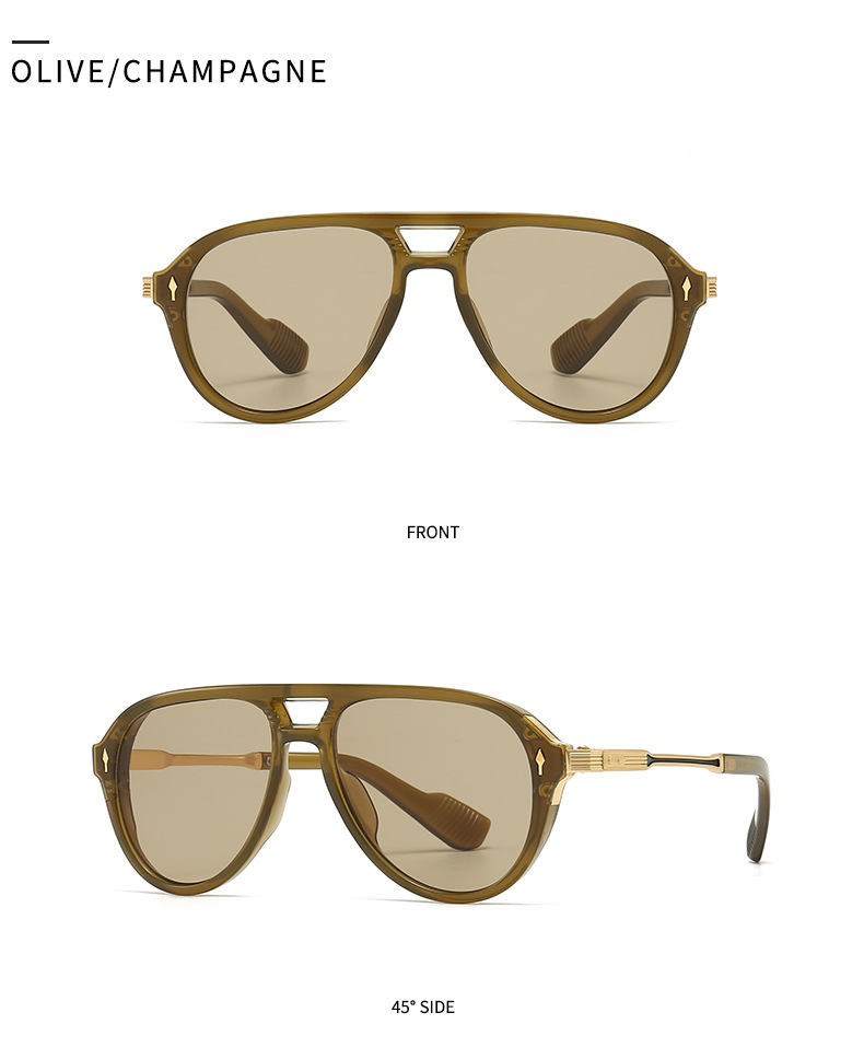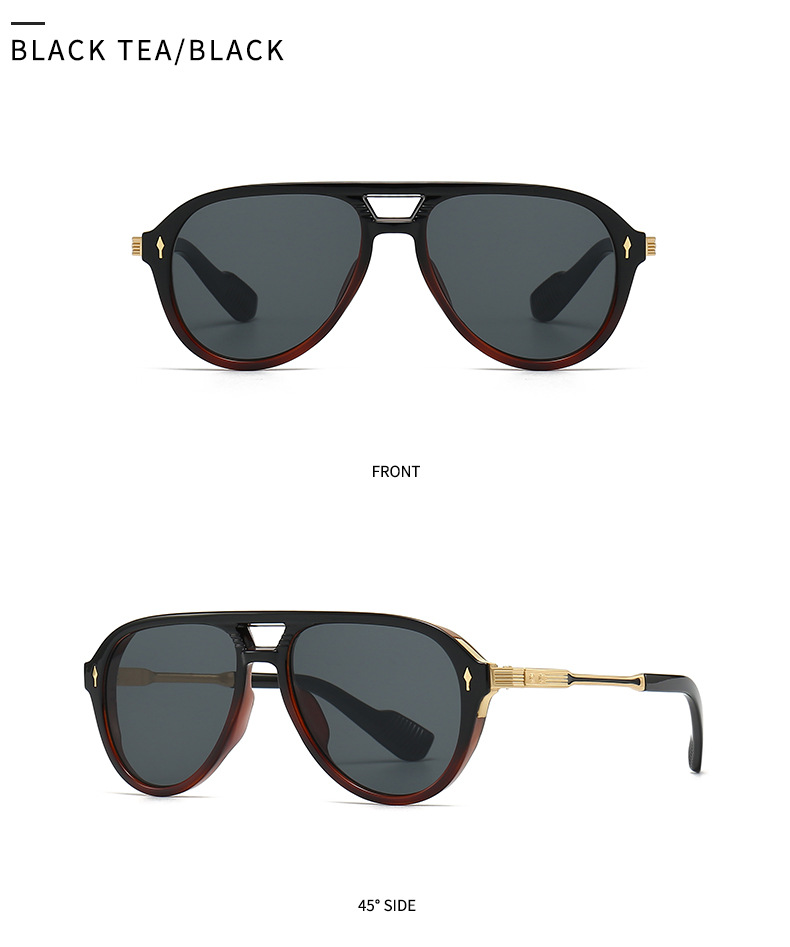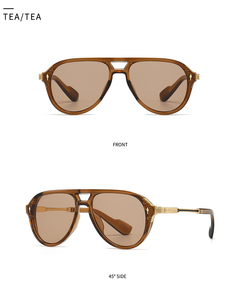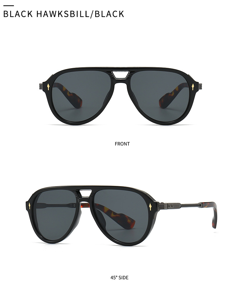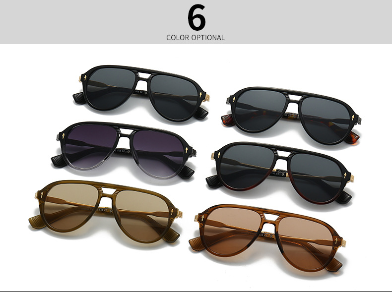 새로운 유럽과 미국 남성 비행사 안경 레트로 더블 빔 박스 선글라스 크로스 국경 재고 도매 6052