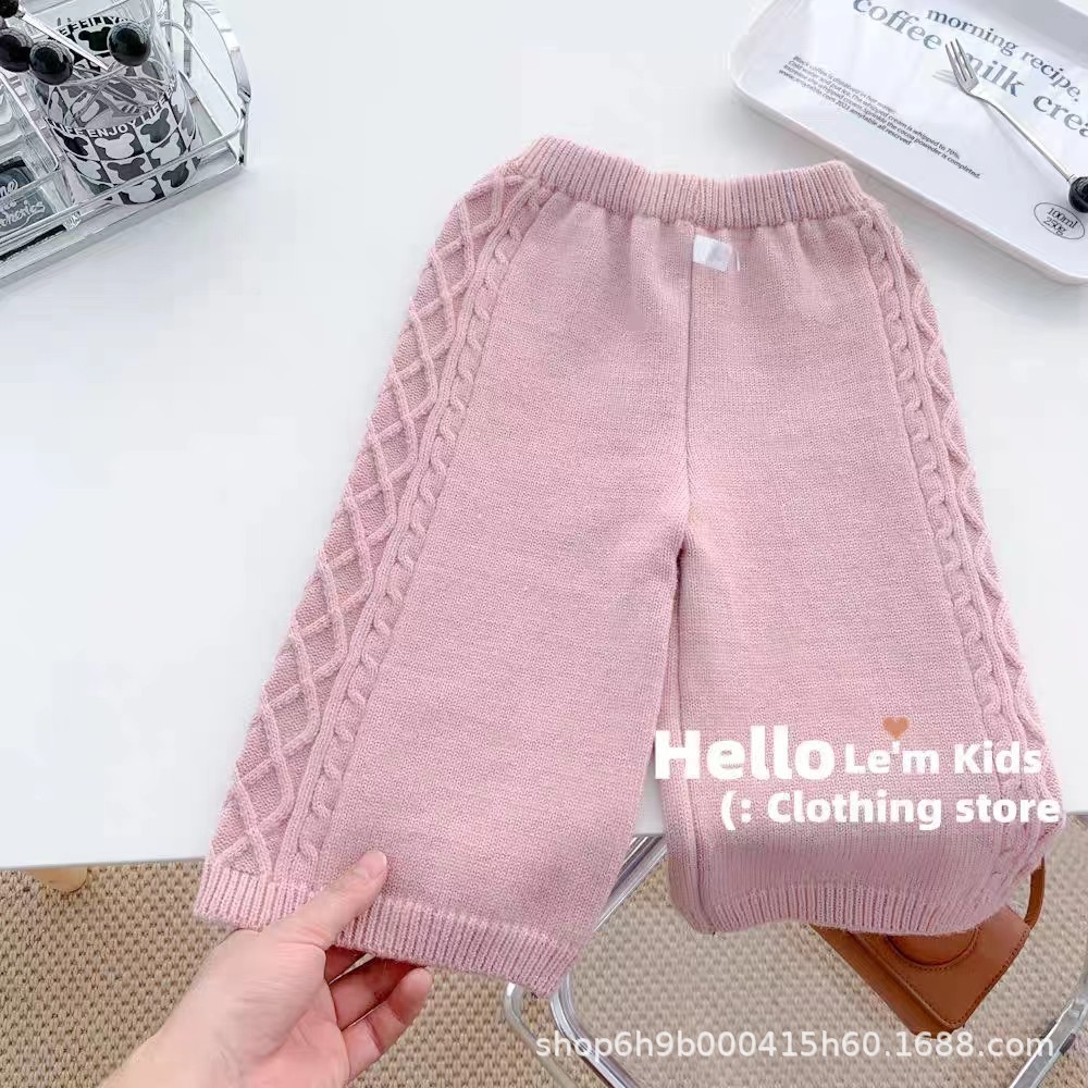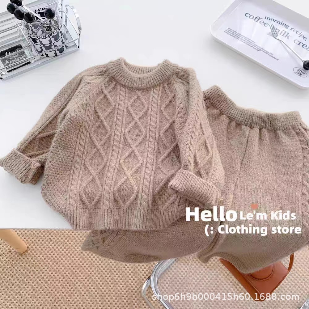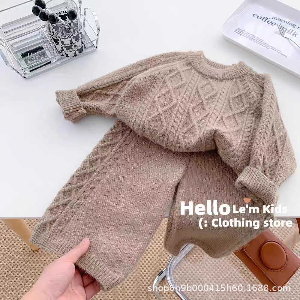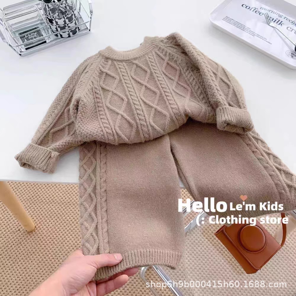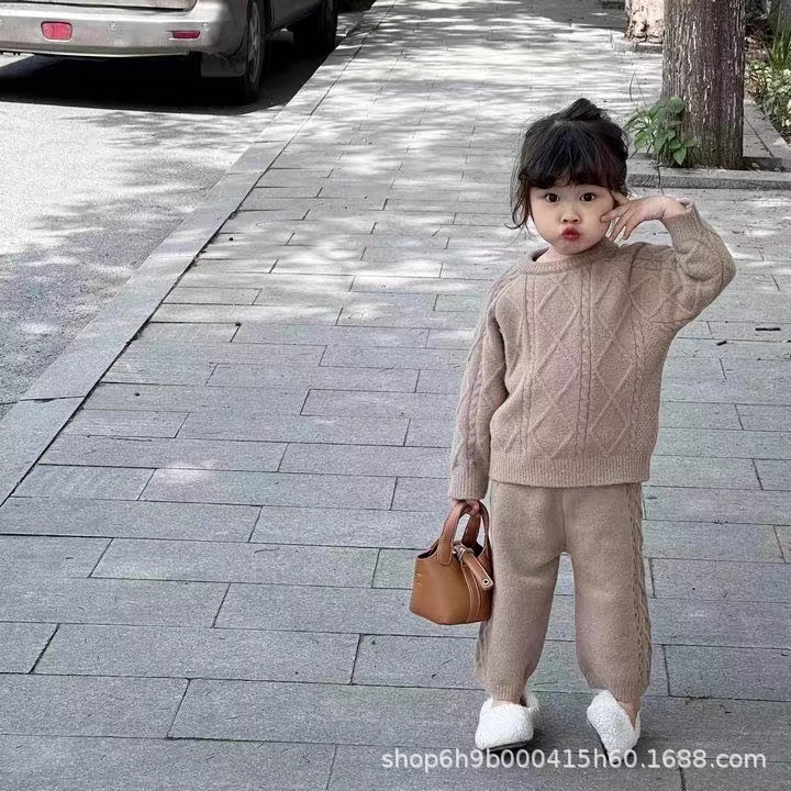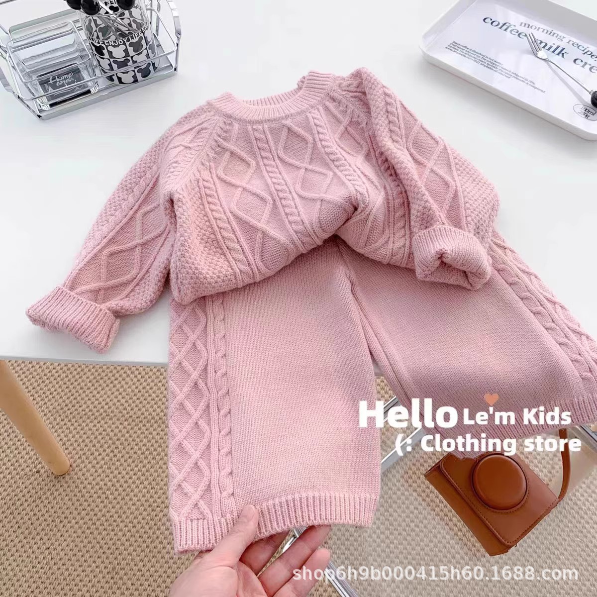 여자 가을 겨울 레트로 한국 스웨터 2025 새로운 어린이 패션 모리 니트 울 바지 세트 트렌디