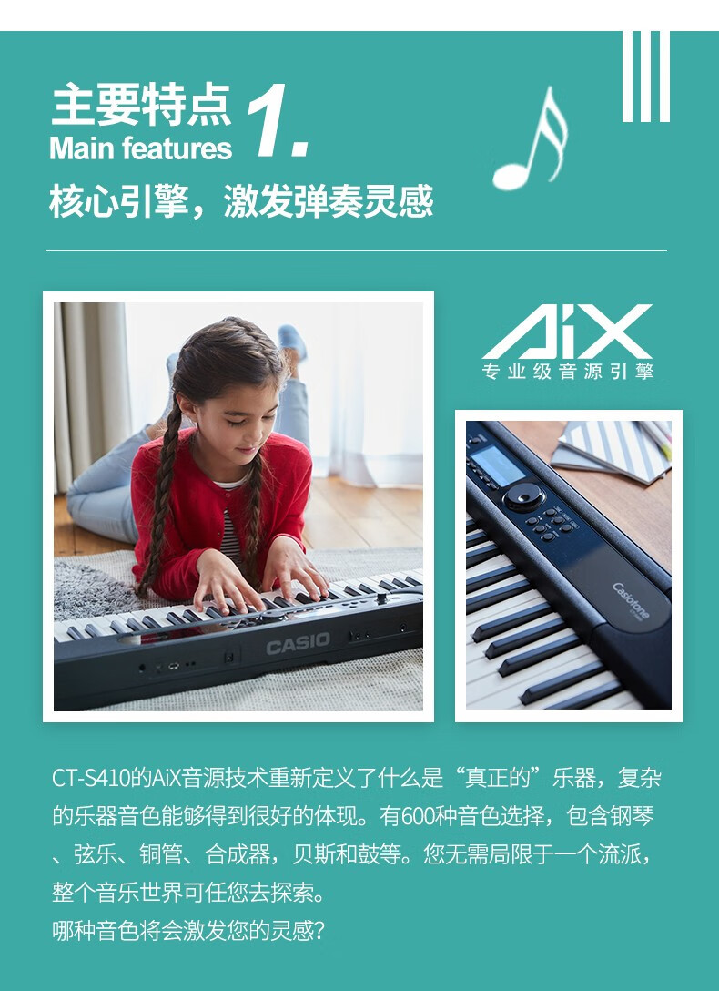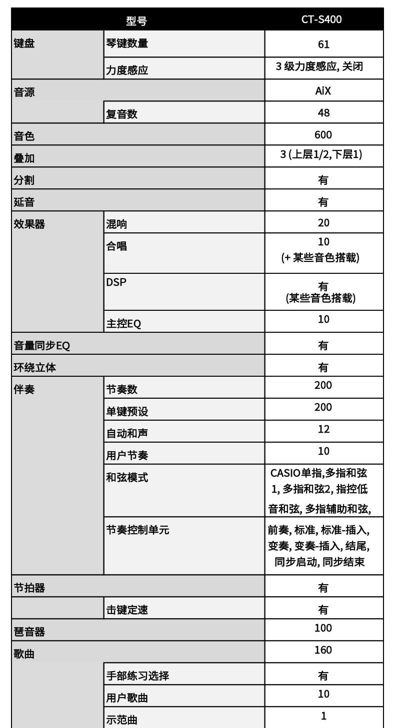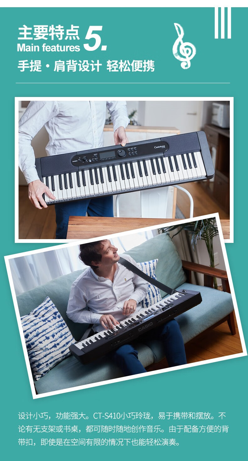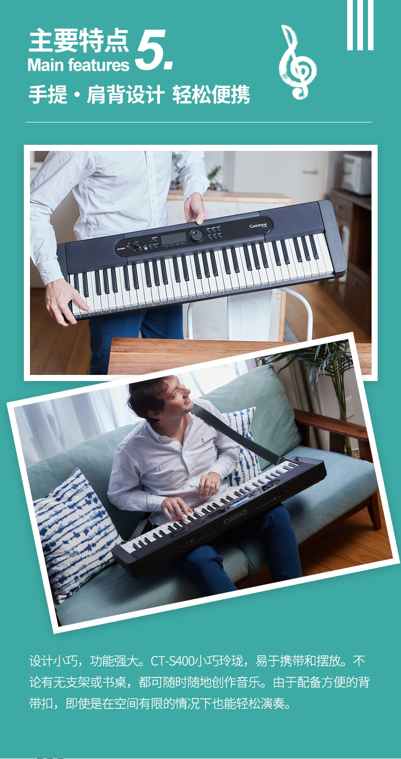 CASIO 전자 장기 CT-S400 강도 유도 키보드 61 키 휴대용 어린이 성인 중학교