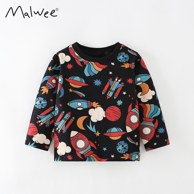 재고 malwee 소년 티셔츠 가을 새로운 기본 셔츠 유럽과 미국 아동 레저 라운드 넥 긴 소매 아동 의류스토어 가기