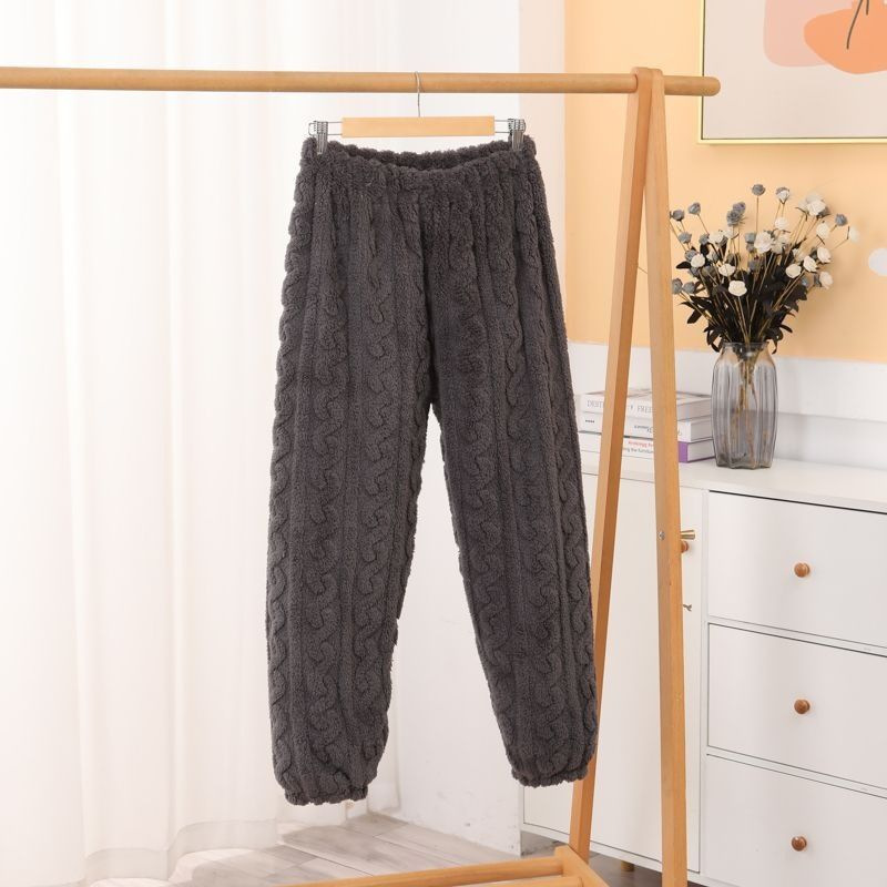 겨울 새로운 기모 두꺼운 가정 의류 여자의 겨울 산호 양털 요정 자카드 따뜻한 바지 느슨한 트위스트 세트스토어 가기