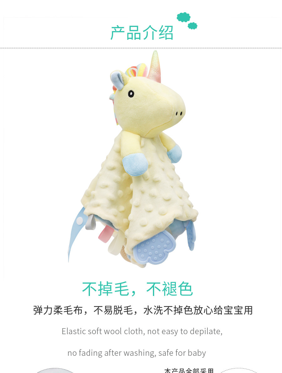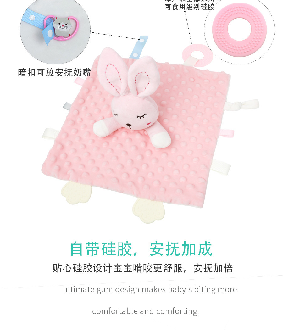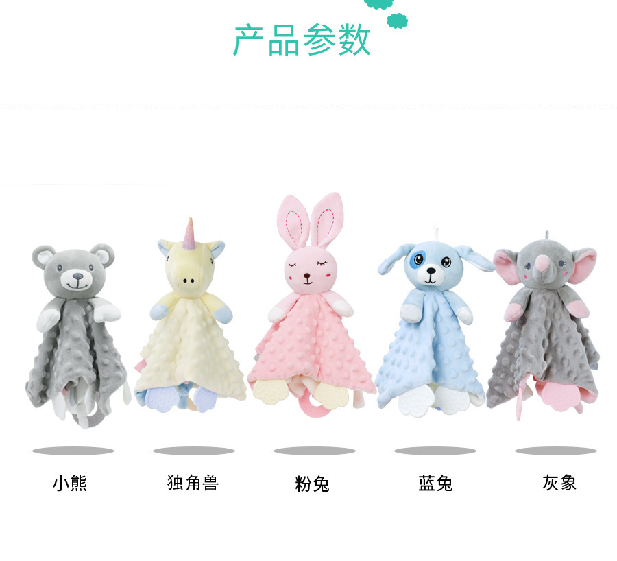 BBSKY 아기 귀여운 만화 동물 편안한 수건 실리콘 어금니 물린 편안한 수건 조기 교육 장난감