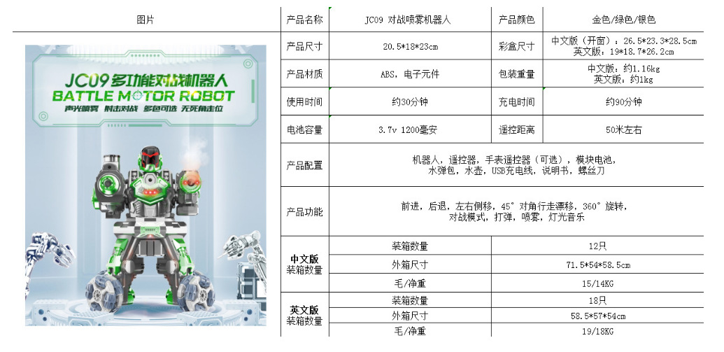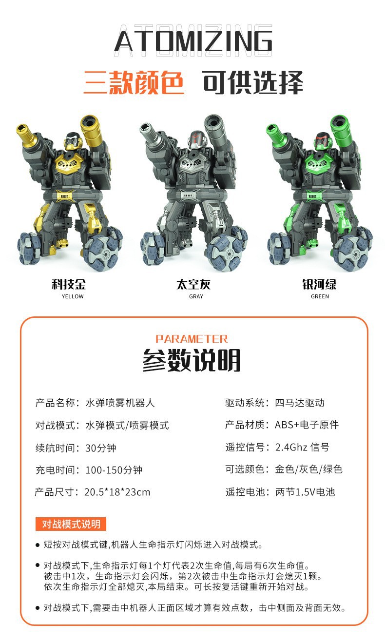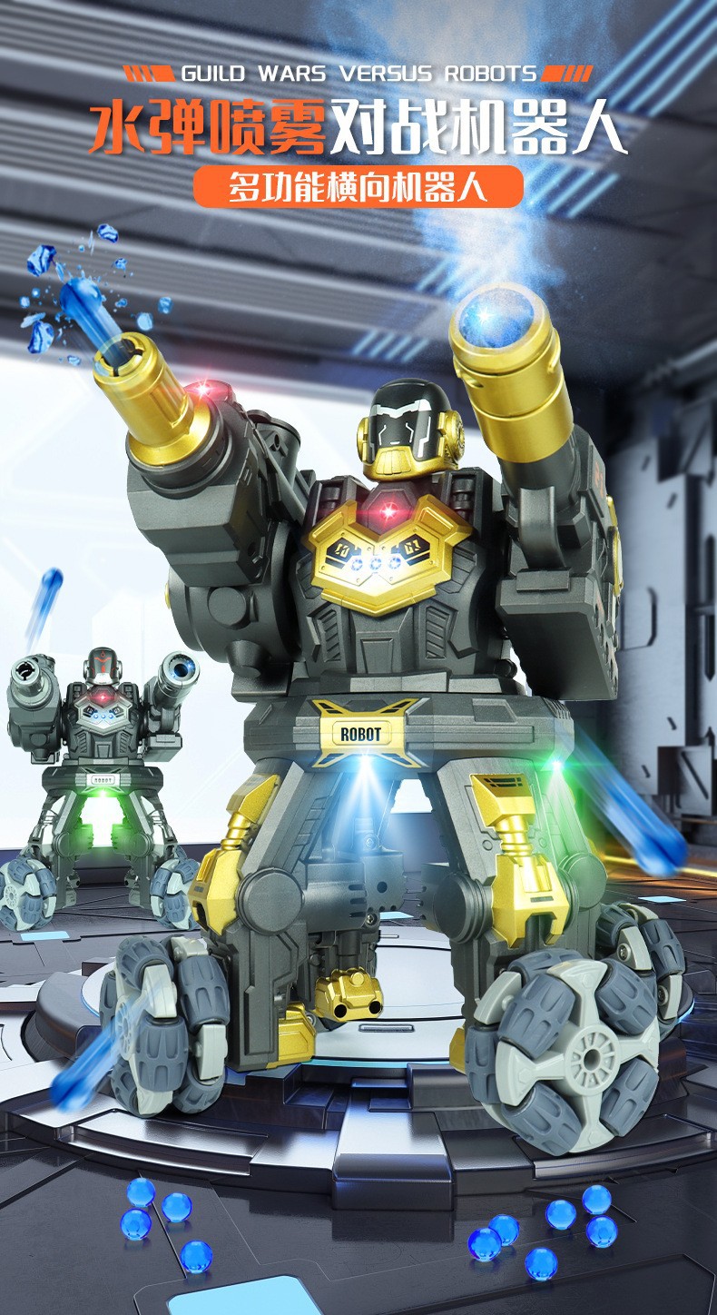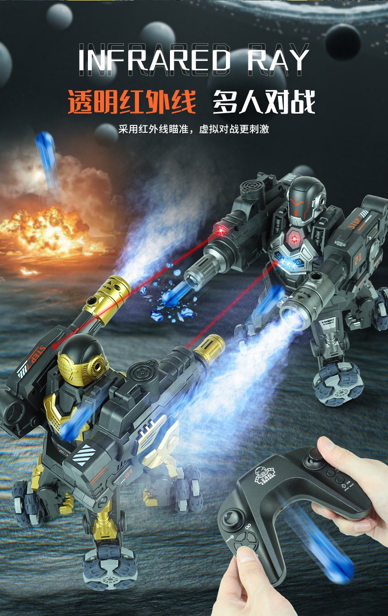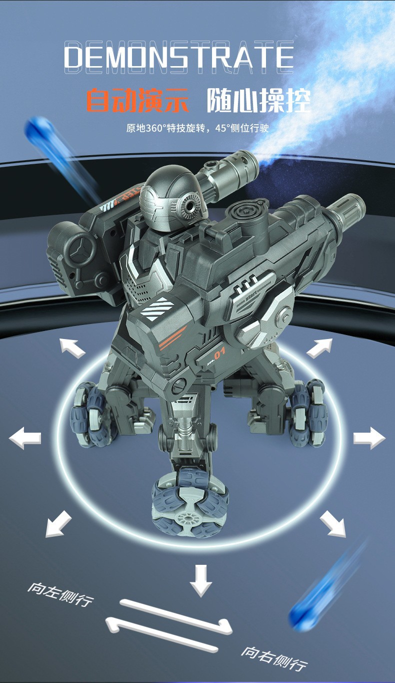 크로스보더 뉴 2.4g 전쟁 로봇 스프레이 리모콘 물폭탄 자동차 로봇 부모와 자식 인터랙티브 장난감 노점 도매스토어 가기