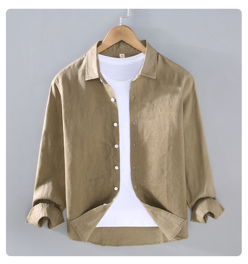 9605 고급 퓨어 린넨 남성 셔츠 봄 여름 캐주얼 라펠 셔츠 플러스 사이즈 느슨한 모든 매치 유행 의류스토어 가기