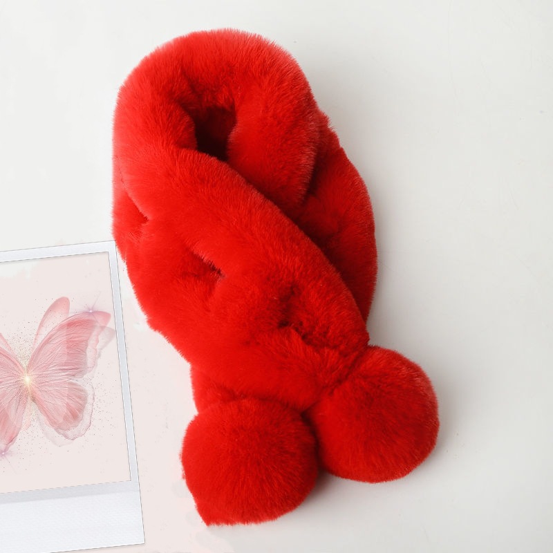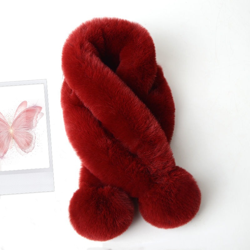 2024 가을 겨울 인조 렉스 토끼털 이중 튜브 크로스 스카프 모피 플러시 목도리 두꺼운 보온 스카프