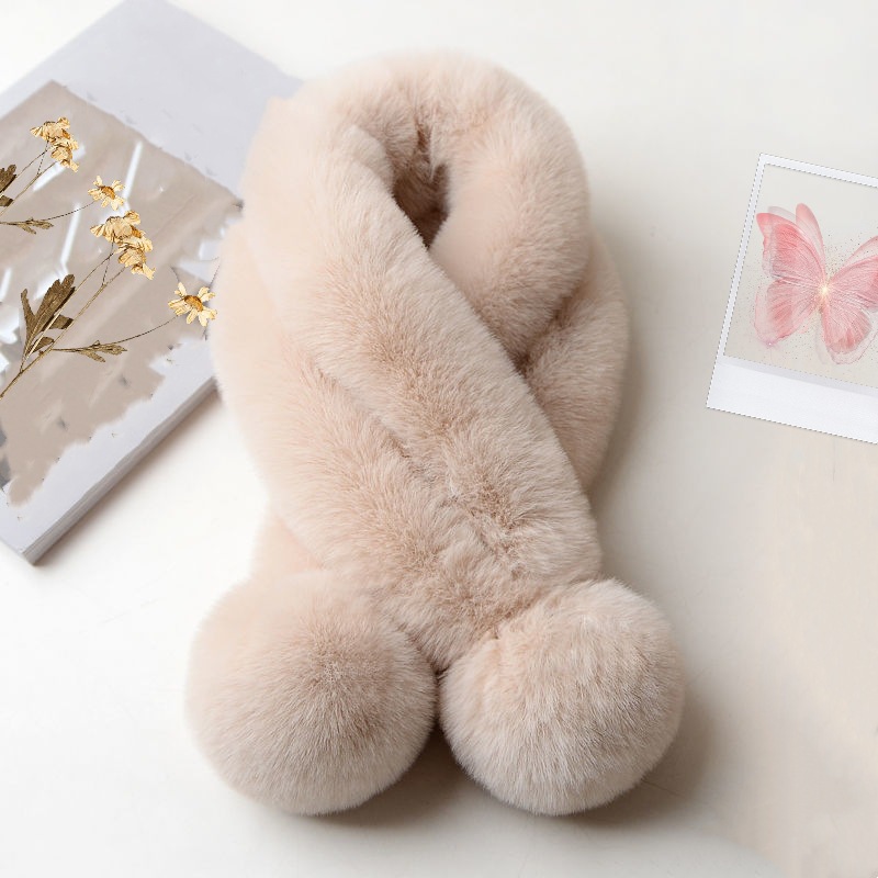 2024 가을 겨울 인조 렉스 토끼털 이중 튜브 크로스 스카프 모피 플러시 목도리 두꺼운 보온 스카프스토어 가기