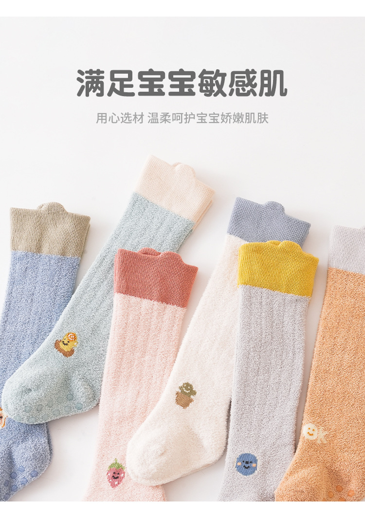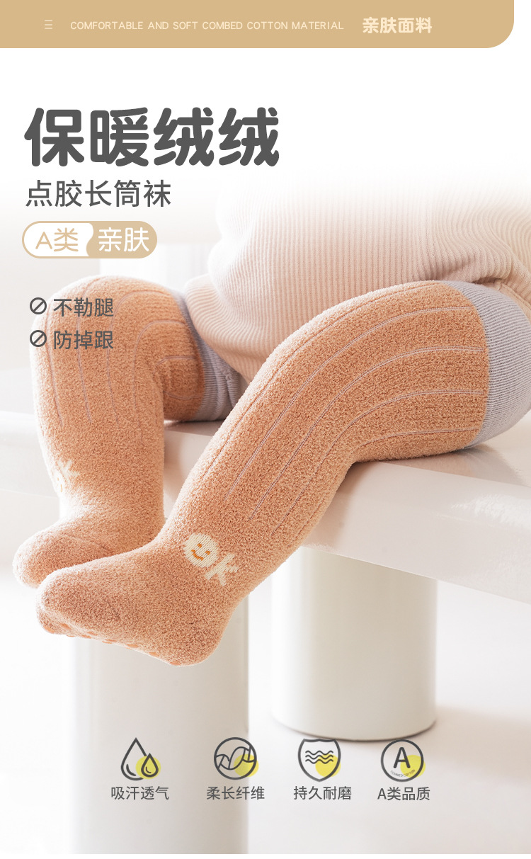 겨울용 두꺼운 터치감 좋은 만화 캐릭터 배색 아기 걸음마 양말 미끄럼 방지 아기 롱삭스 보온 무릎 위까지 오는 아동 양말스토어 가기