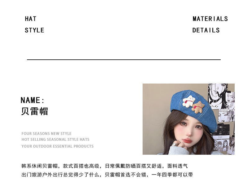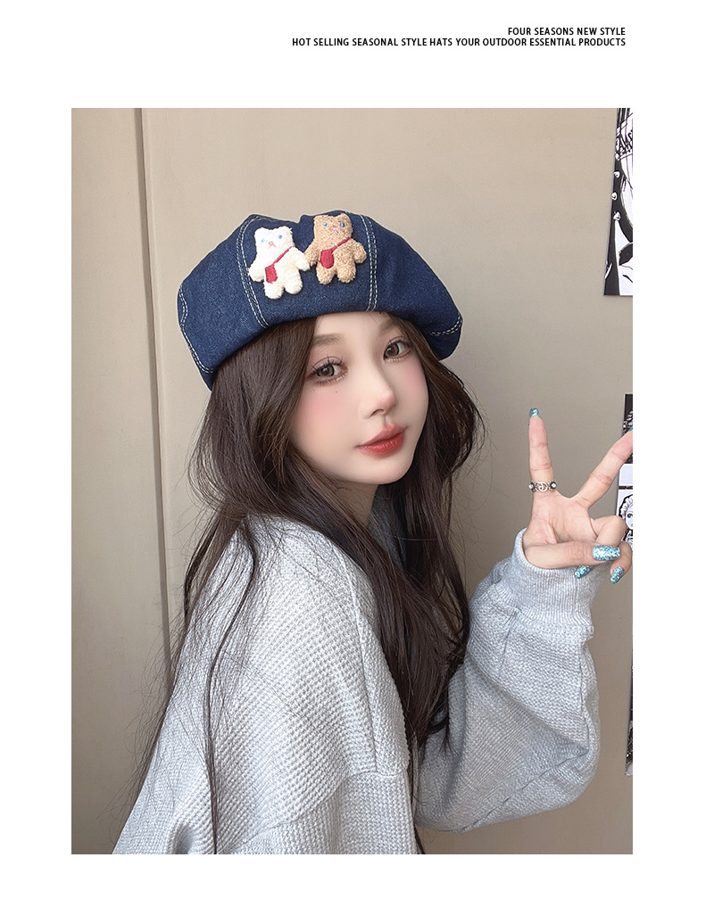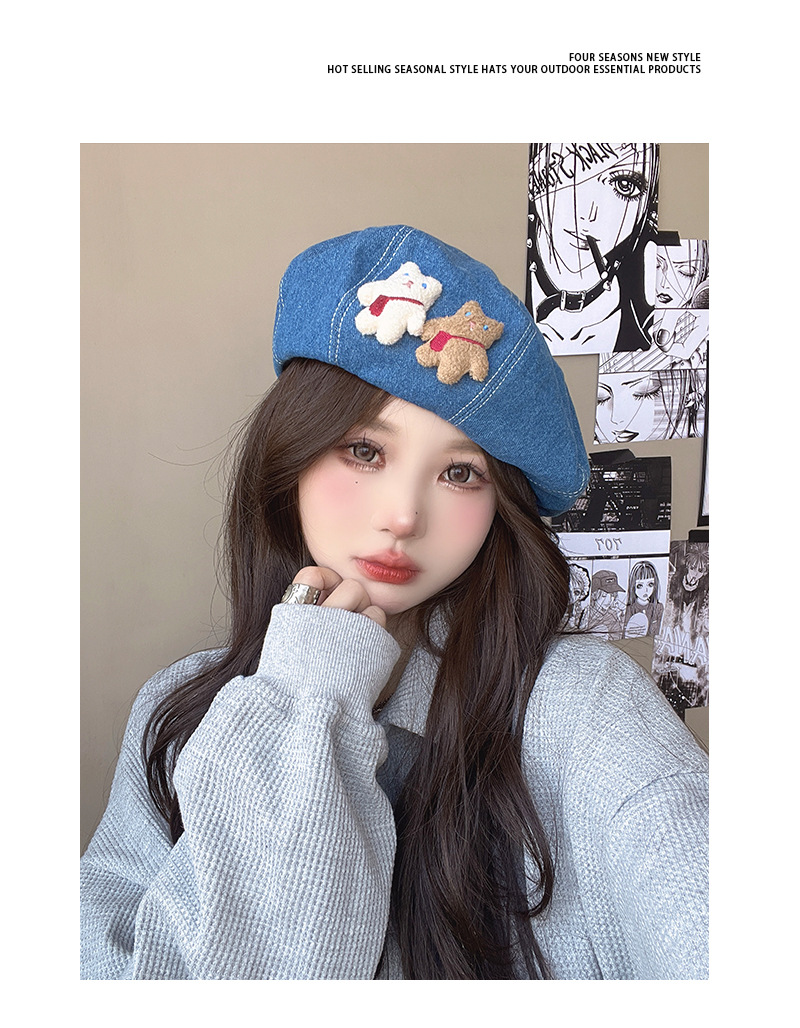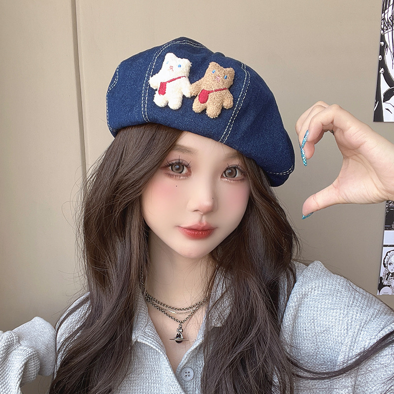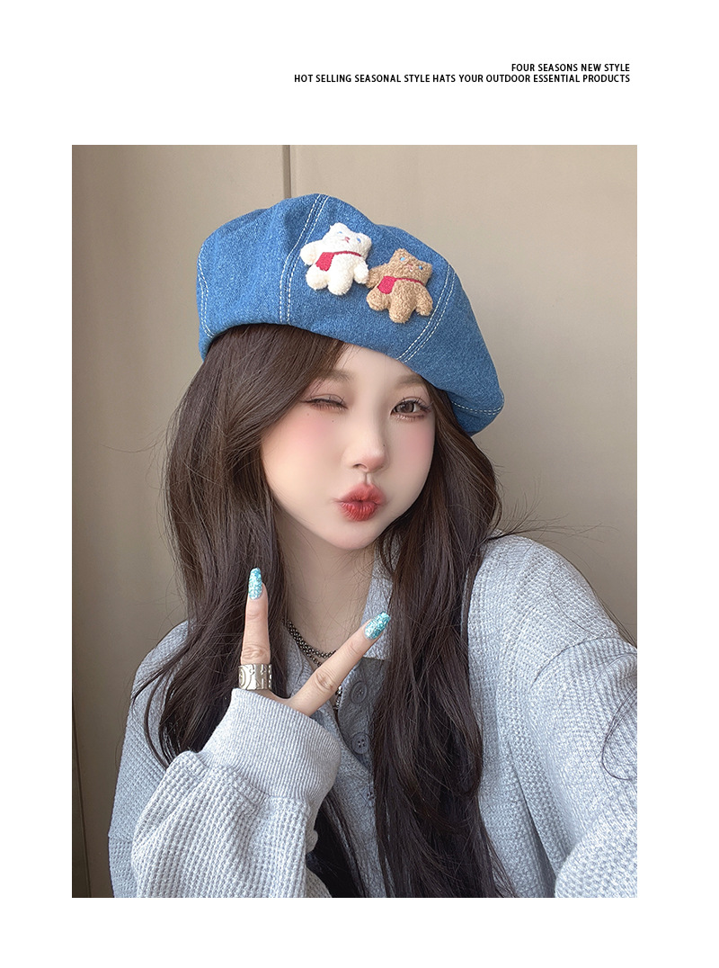 베레모 데님 여성의 봄과 여름 일본 귀여운 자외선 차단제 야외 인터넷 연예인 학생 쇼 얼굴 작은 화가 모자 달콤한 아름다움