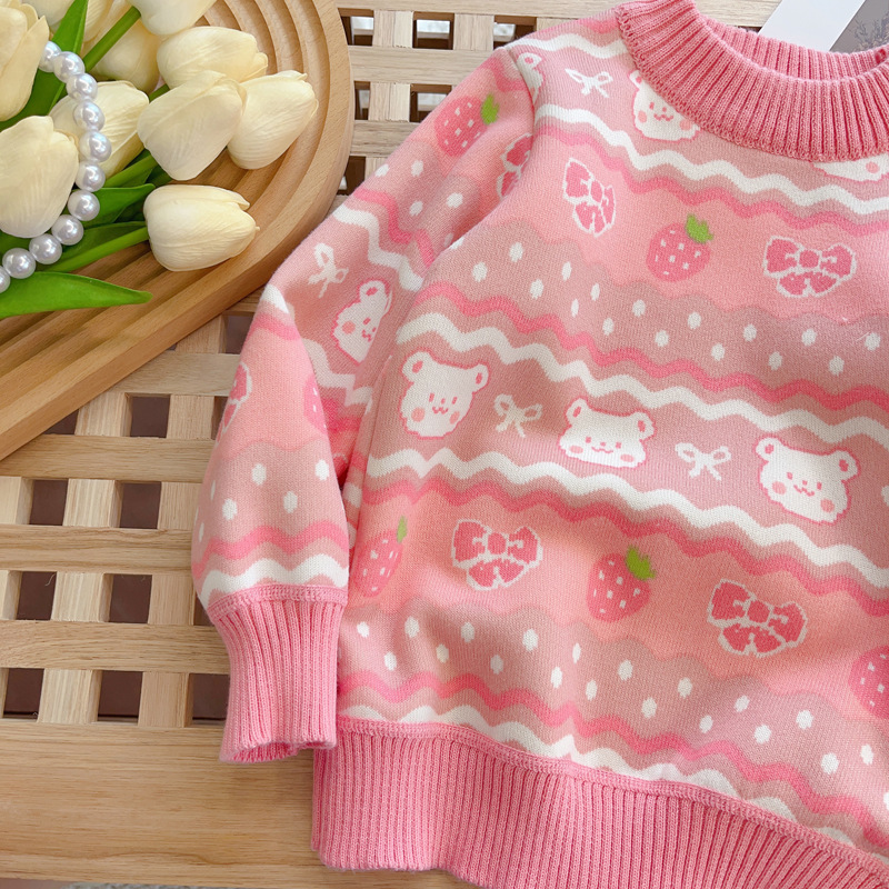 여아 스웨터 가을과 겨울 기모 두꺼운 아기베이스 셔츠 세련된 어린이 라운드 넥 스웨터 가을 옷