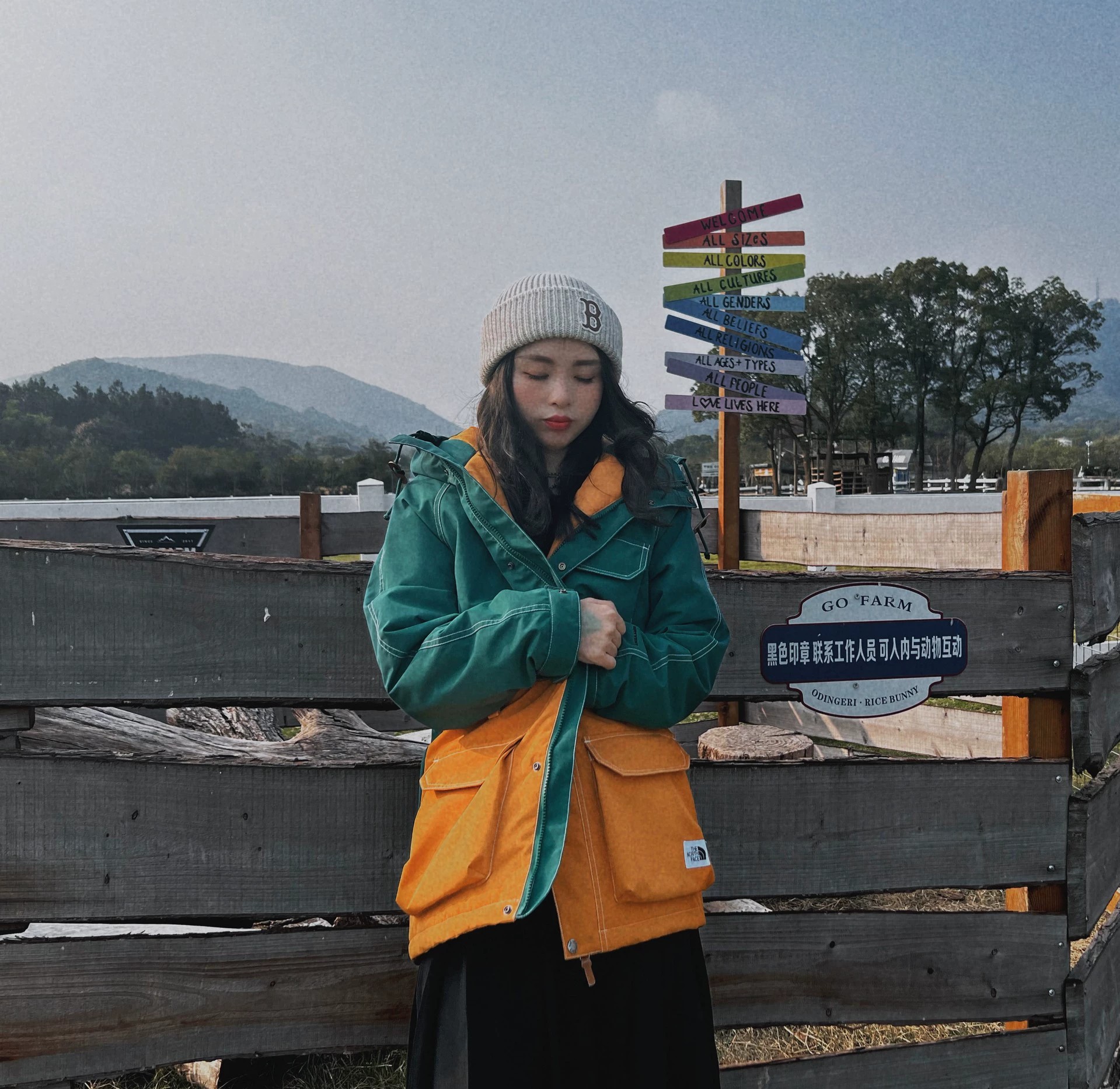 • 멋스러운 TNF 컬러블록 코튼 재킷