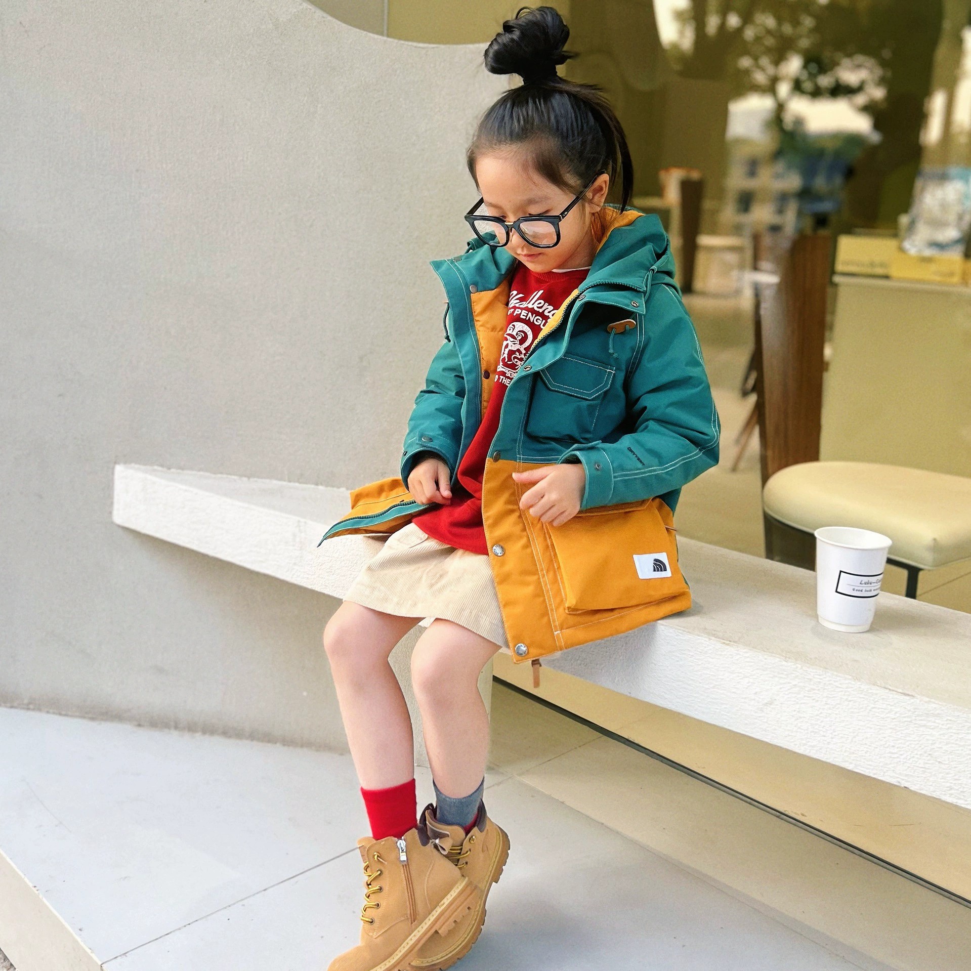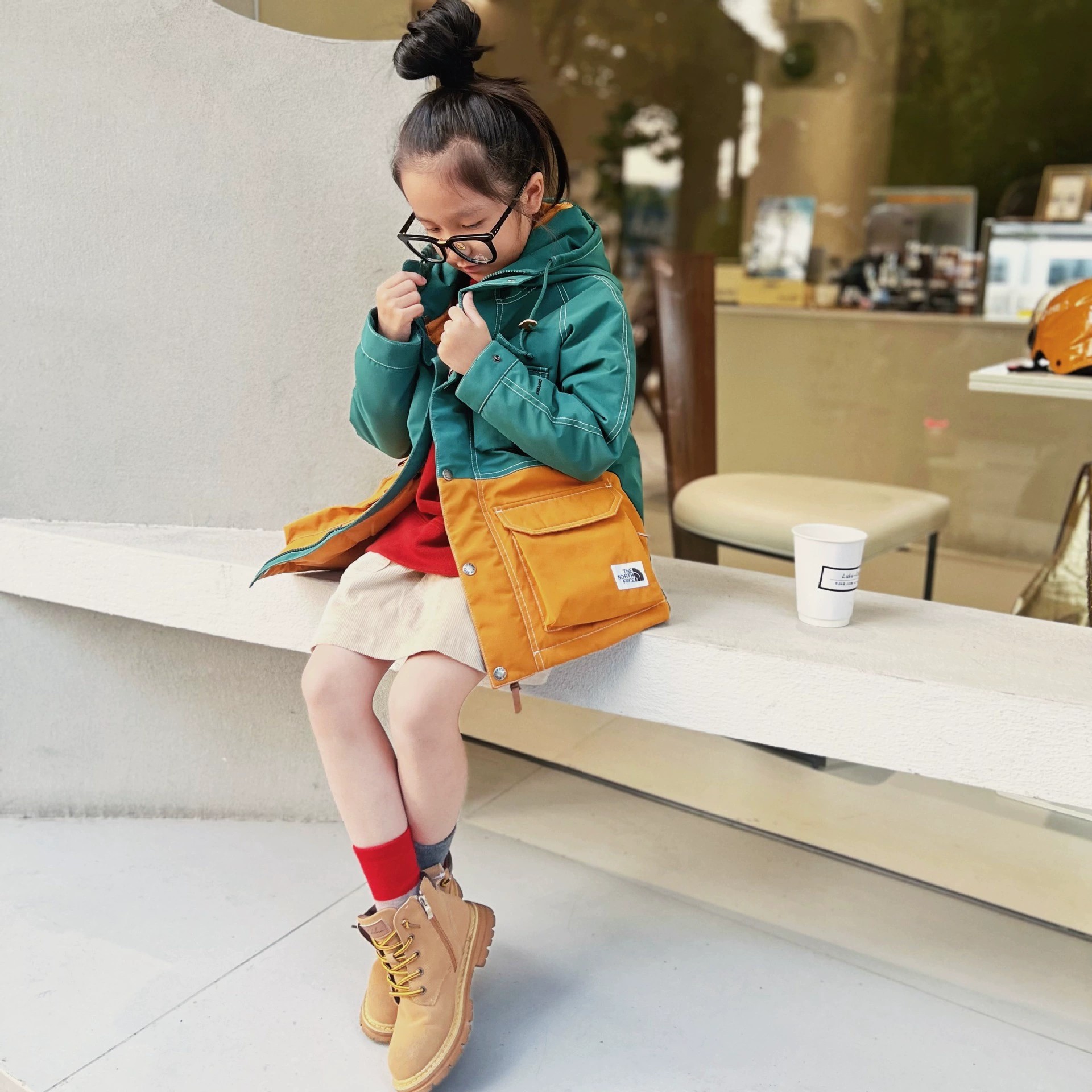 Heavy Industry Spot 23 겨울 신작 아동용 대비 색상 퀼팅 재킷 소년 소녀용 3방 방수 원단 탑스티치 재킷