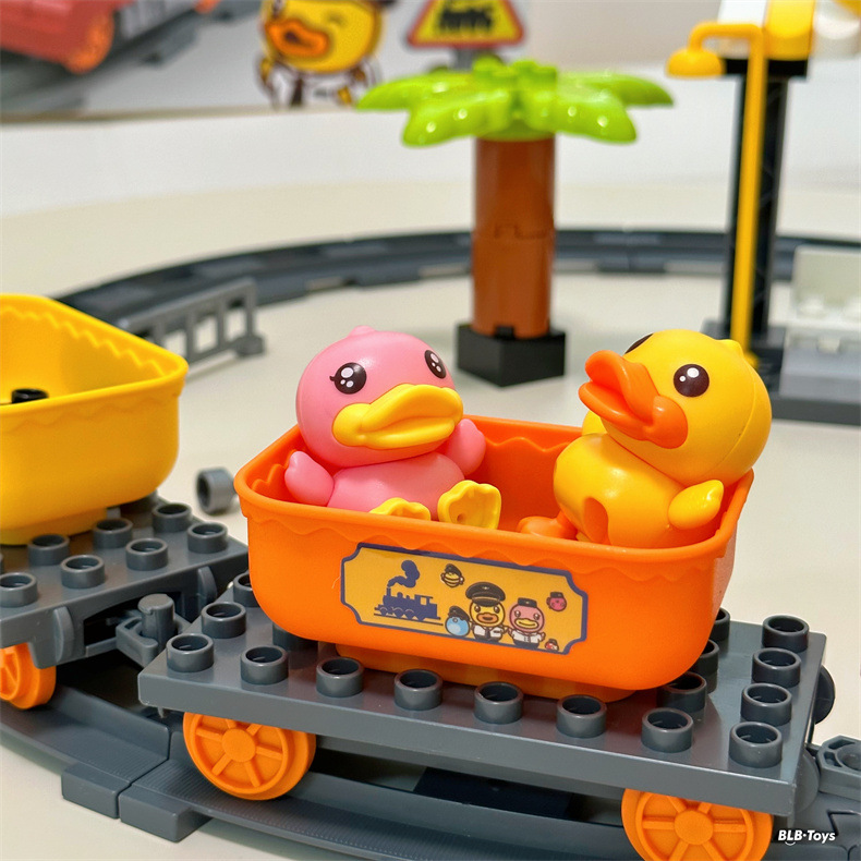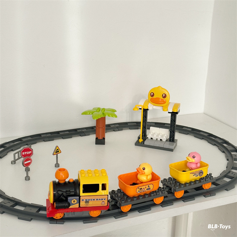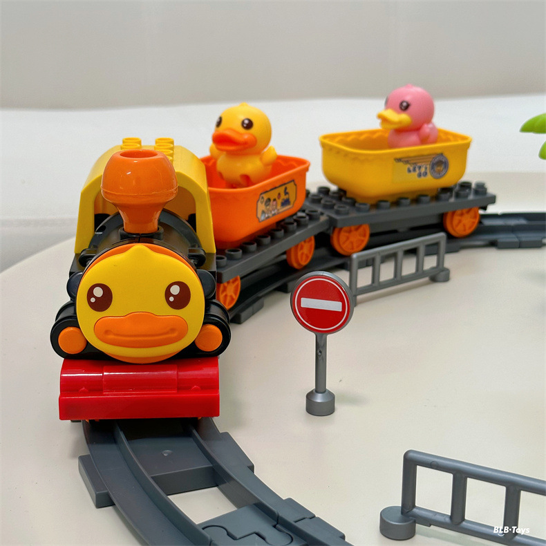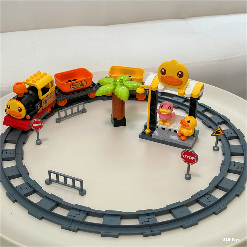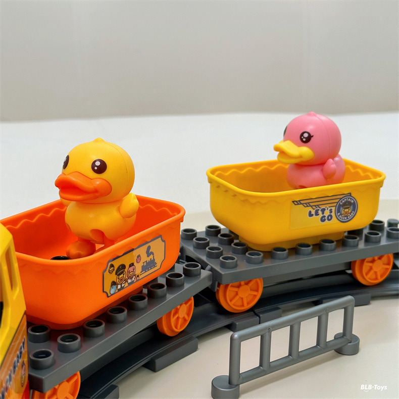 B.DUCK 어린이 전기 철도 자동차 노란색 DUCK 퍼즐 DIY 다기능 철도 열차 생일 선물 장난감스토어 가기