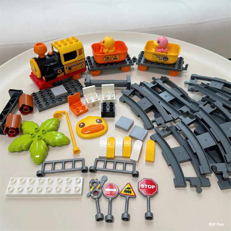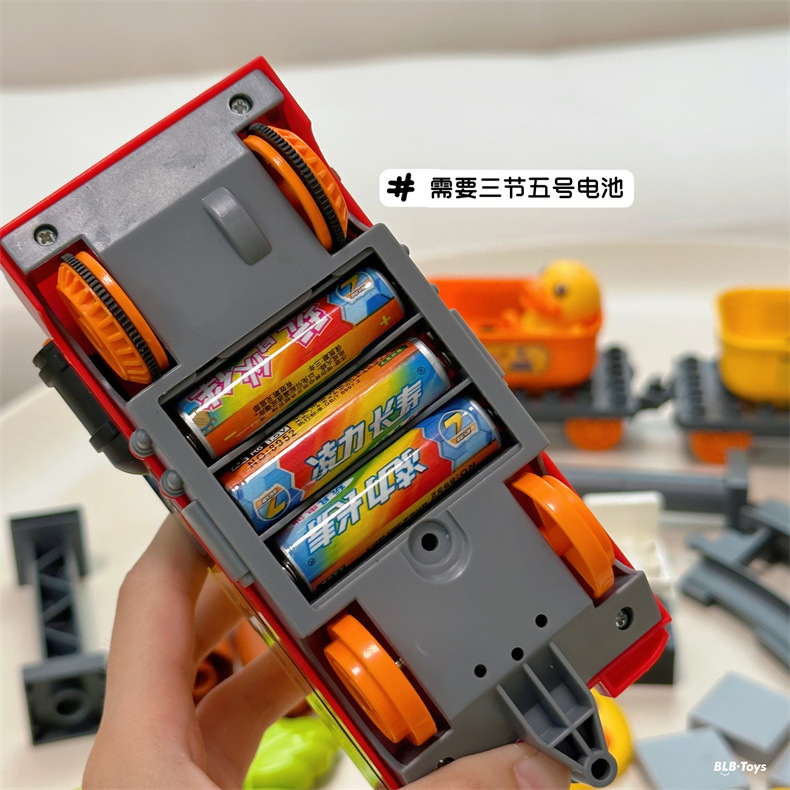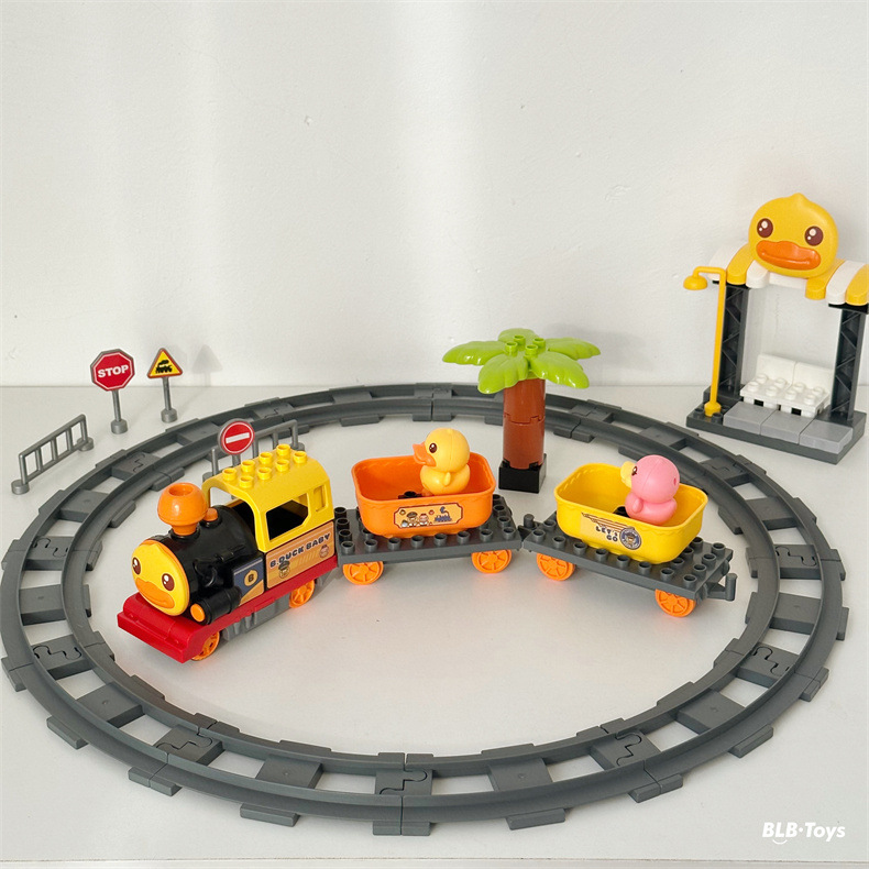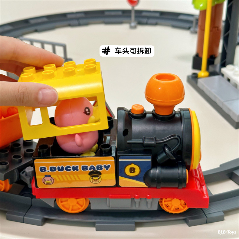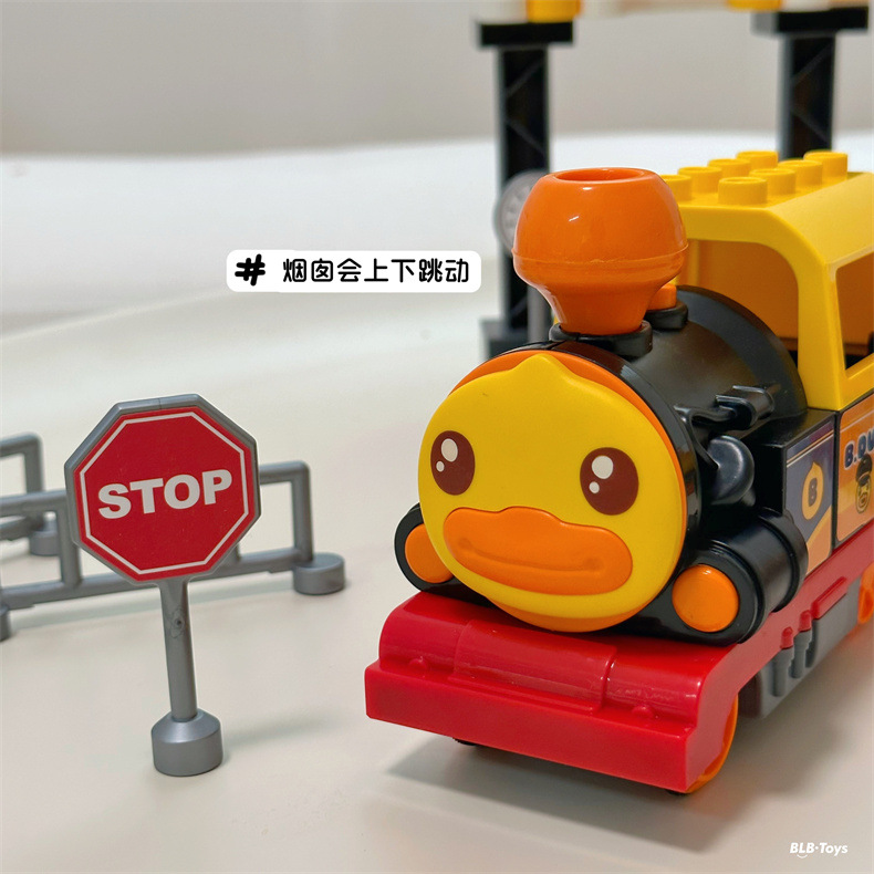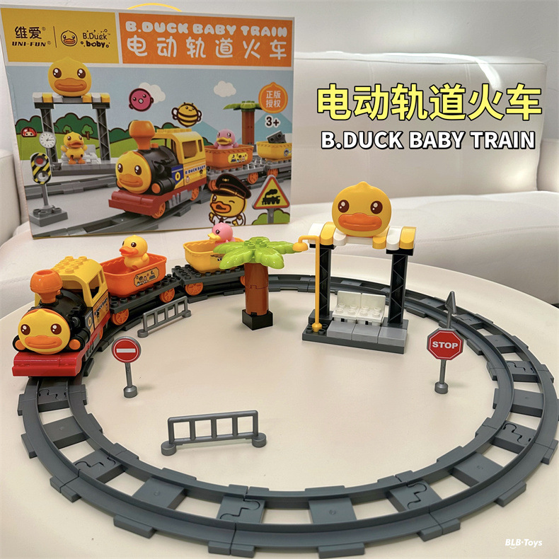 B.DUCK 어린이 전기 철도 자동차 노란색 DUCK 퍼즐 DIY 다기능 철도 열차 생일 선물 장난감스토어 가기
