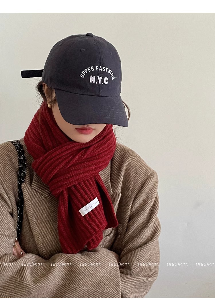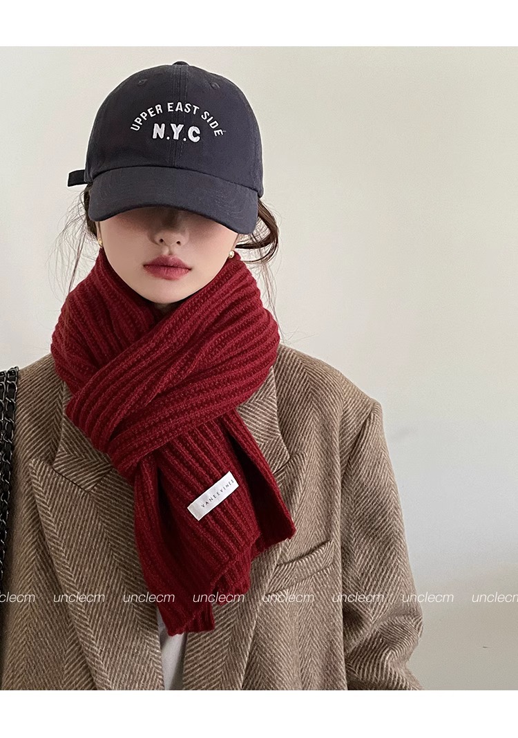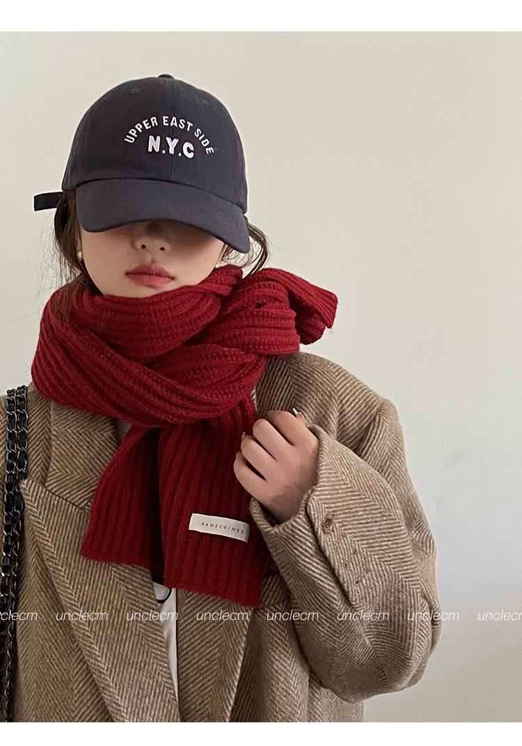 2024년 겨울 여아용 빨간색 니트 모직 스카프 새로운 다용도 고급 스카프와 숄로 크리스마스를 따뜻하게 유지스토어 가기