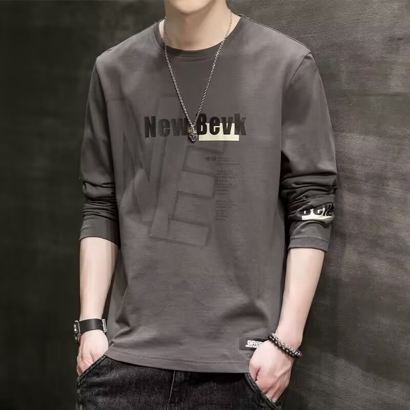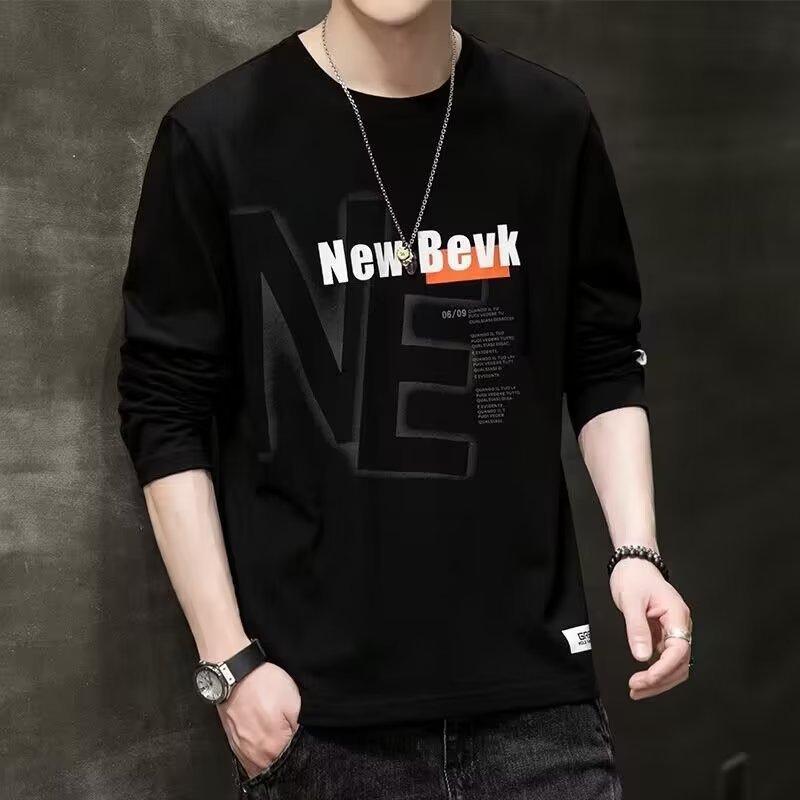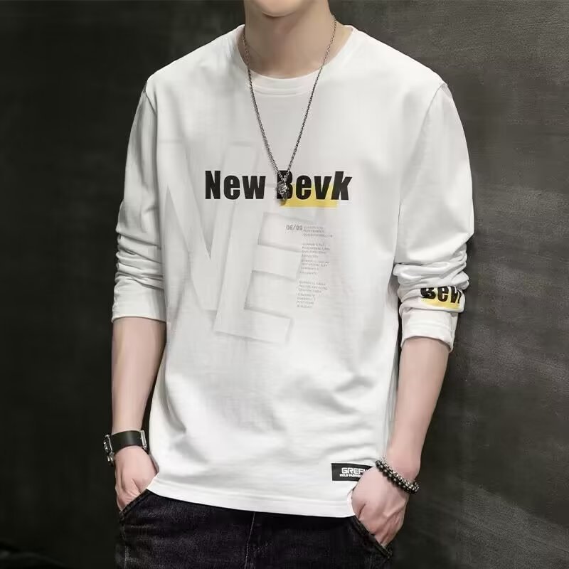 셔츠 덜 의류 긴팔 티셔츠 남자의 가을 새로운 얇은 한국 스타일 슬림핏 크루넥 편지 유행 유행 유행 탑