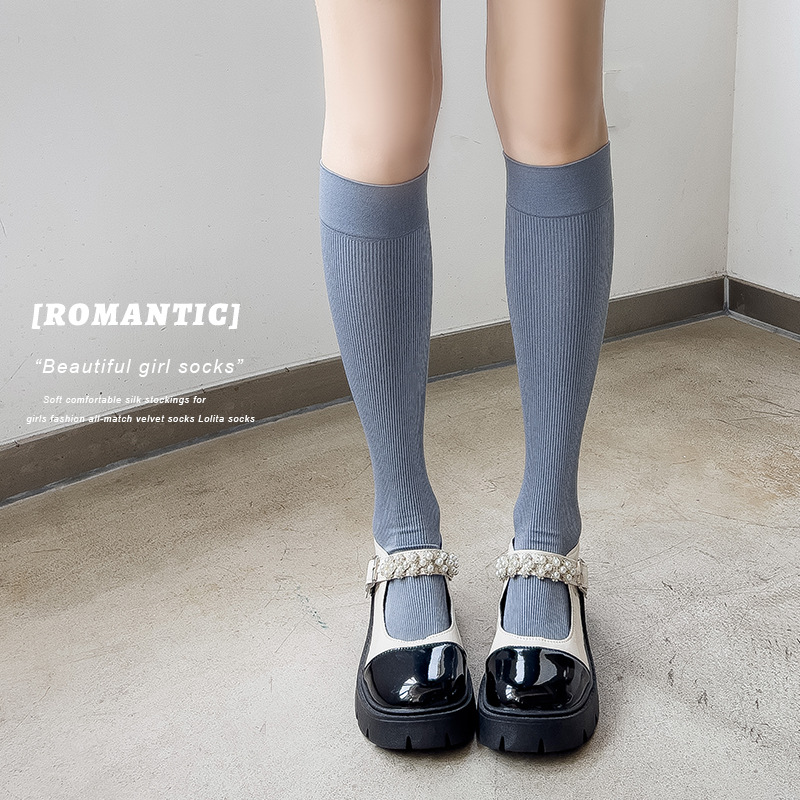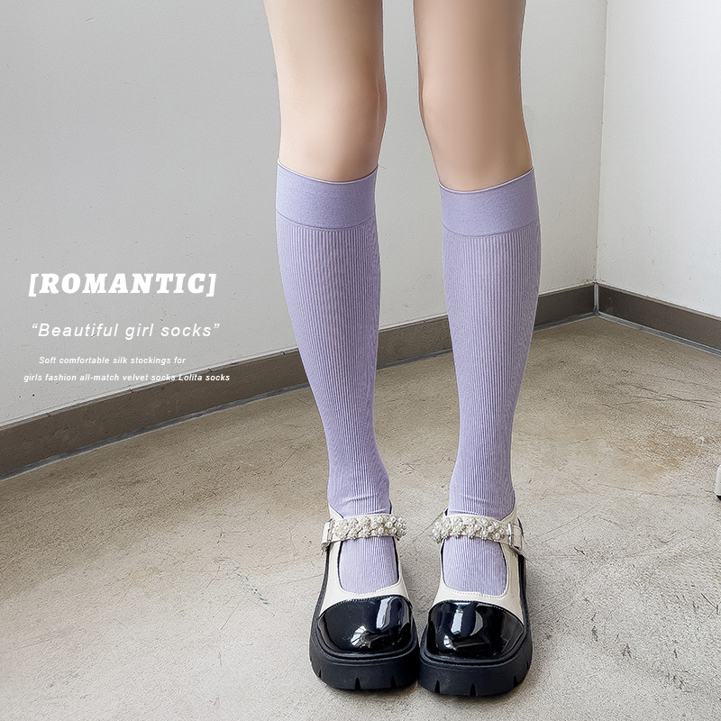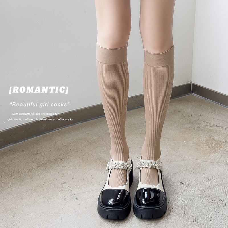 압축 양말 여성 봄과 가을 단색 스타킹 슬리밍 JK 송아지 슬리밍 일본 다크 브라운 스키니 다리 양말 공장 도매