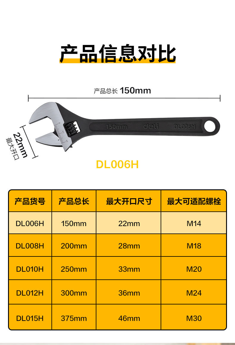 델리 블랙 조절식 렌치 다기능 렌치 두꺼운 몸체 렌치 DL006H 8H