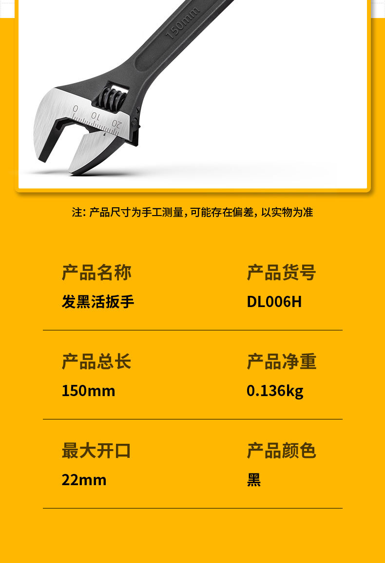 • 6 인치 블랙 조절 렌치 dl00h