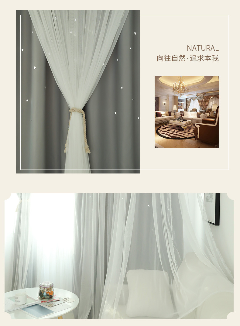 ✅ 프랑스 스타일의 이중 레이어 거즈 일체형 커튼 레이스 로맨틱 2023 새로운 스타일 거실 침실 소녀용 암막 커튼스토어 가기