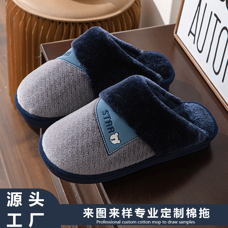 사용자 정의 남자의 플러스 사이즈 면 슬리퍼 겨울 새로운 실내 홈 미끄럼 방지 두꺼운 밑창 따뜻한 가정용 신발스토어 가기