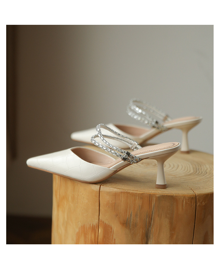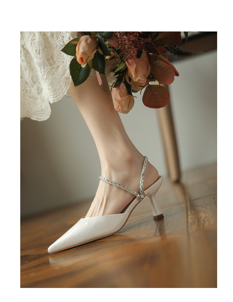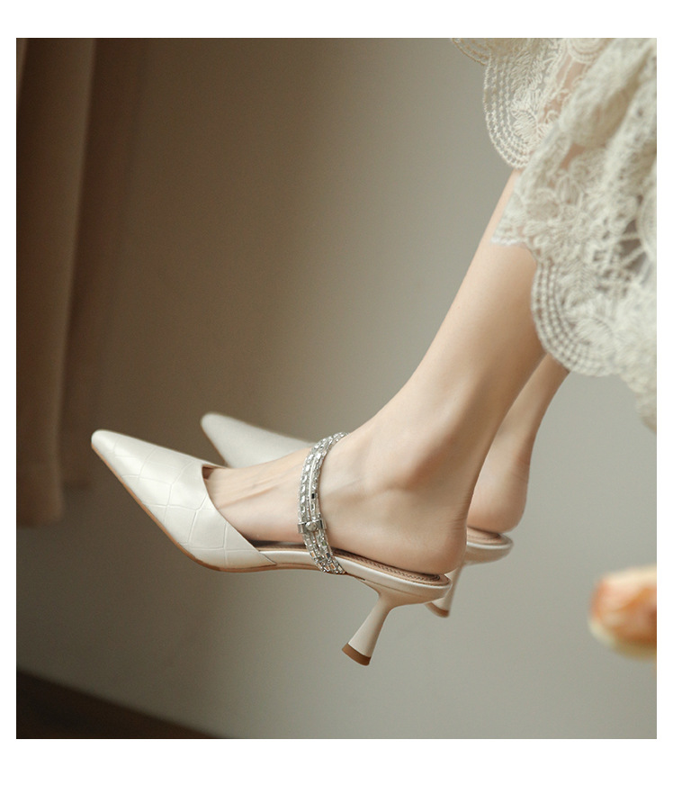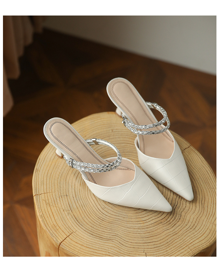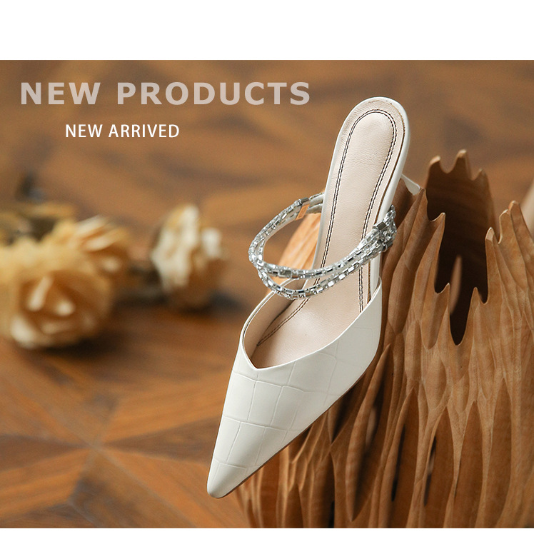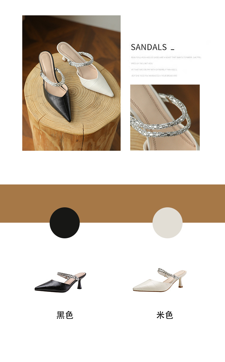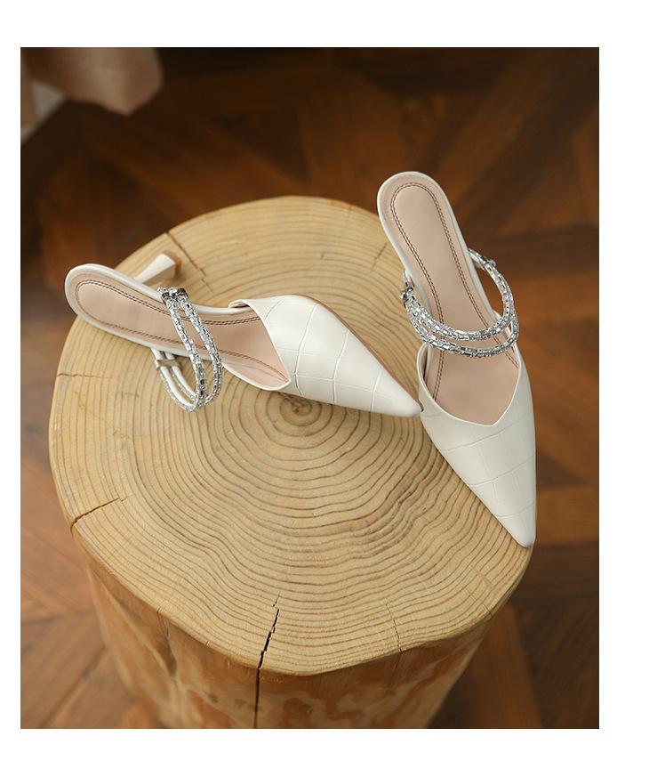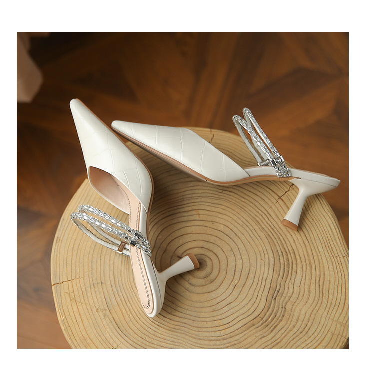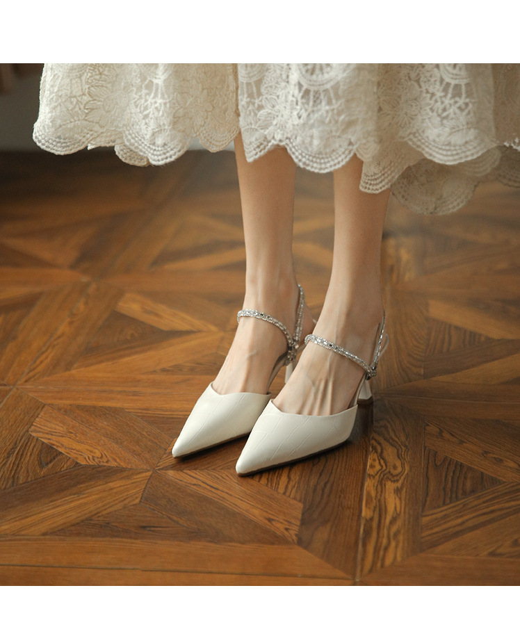 1 신발 2 착용 여성 샌들 2023 여름 새 가죽 미드 힐 뾰족한 발가락 랩 힐 아이보리 스틸레토 하이힐스토어 가기