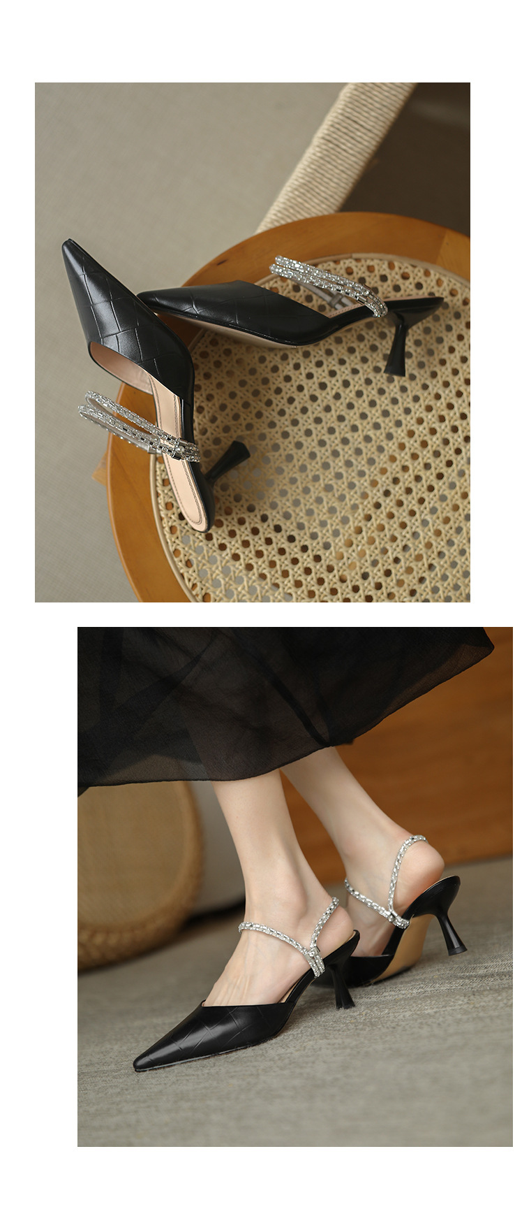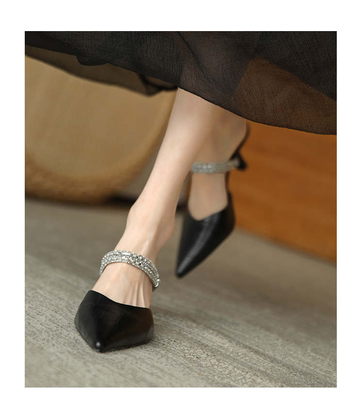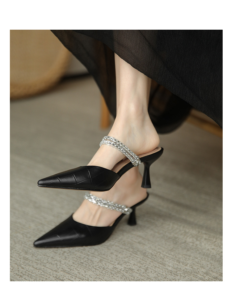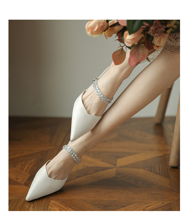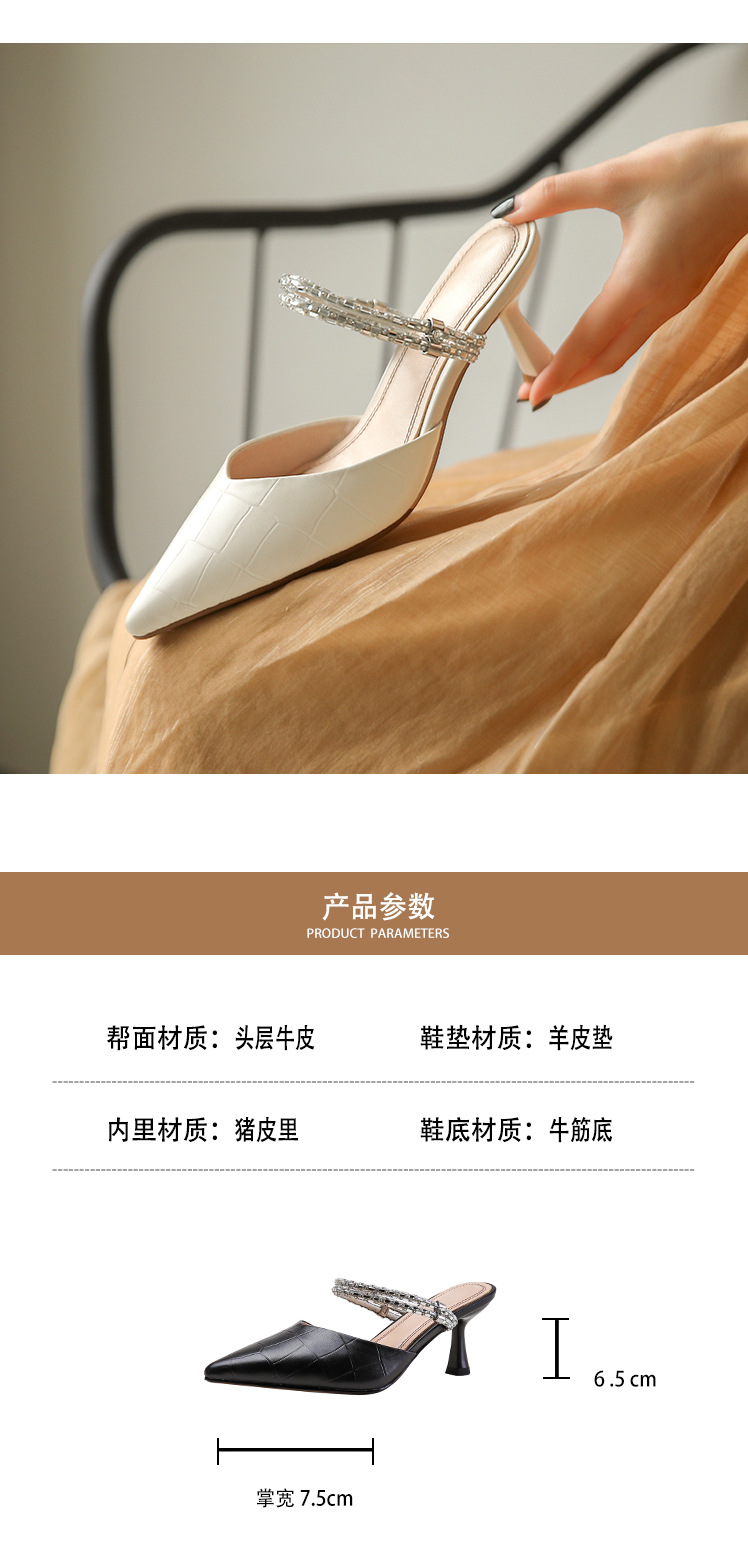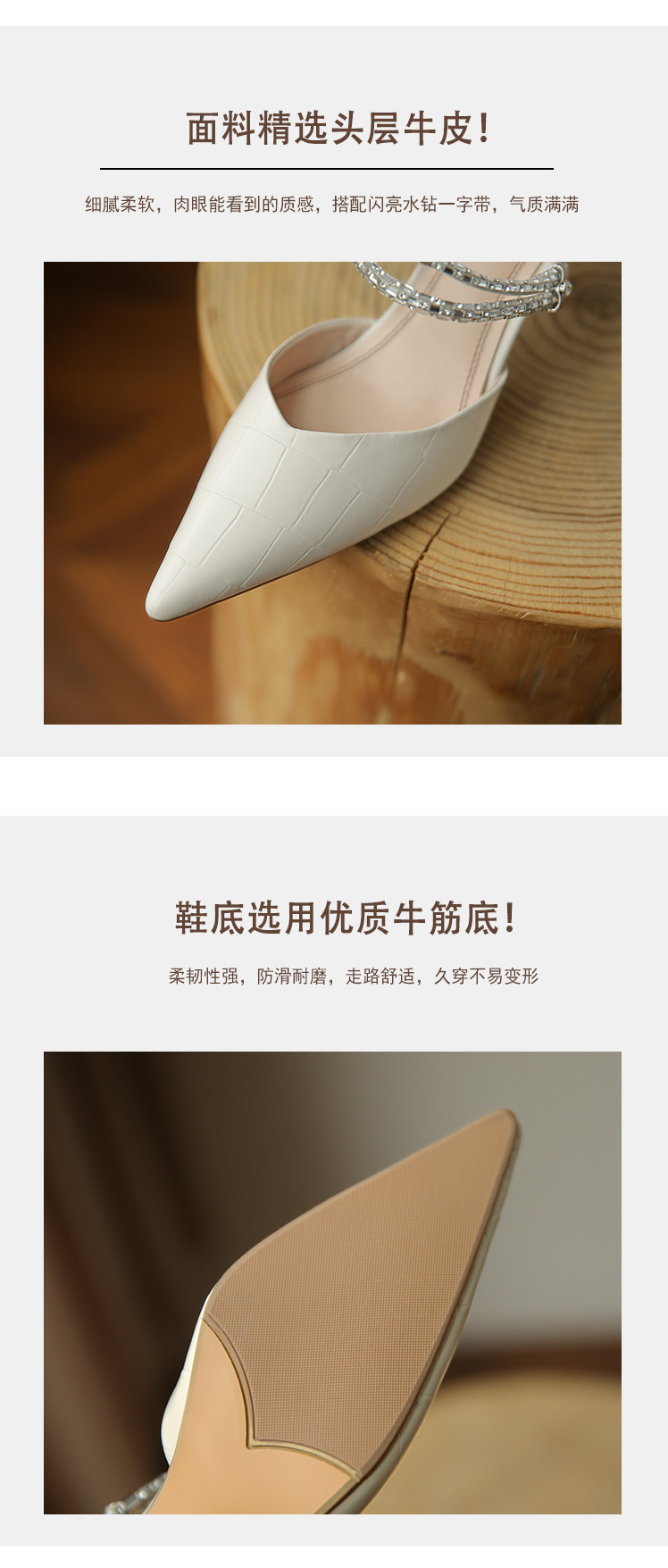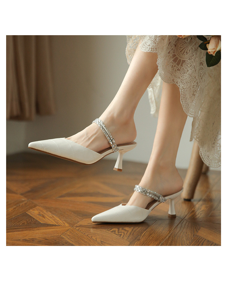 1 신발 2 착용 여성 샌들 2023 여름 새 가죽 미드 힐 뾰족한 발가락 랩 힐 아이보리 스틸레토 하이힐스토어 가기