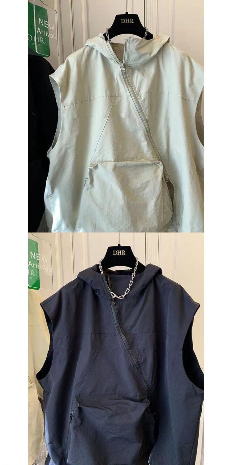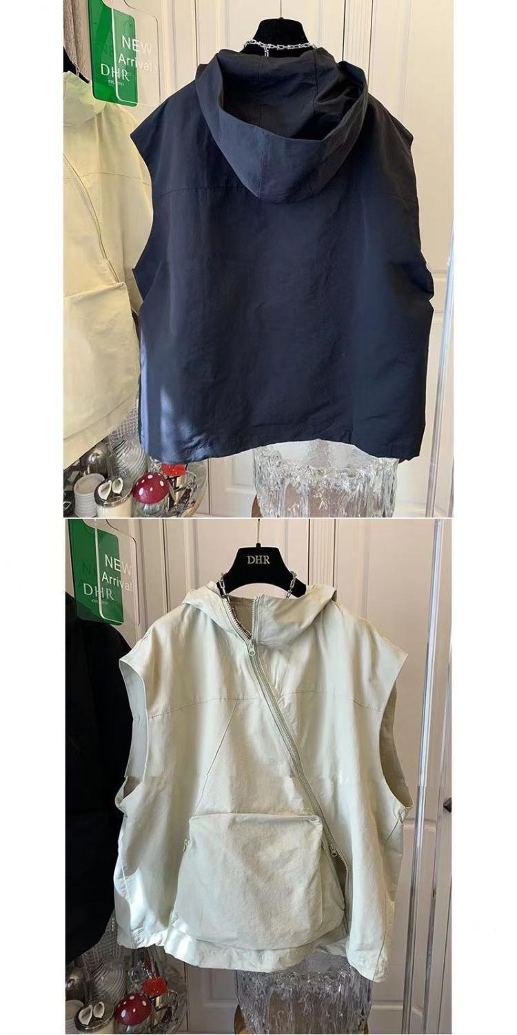 그린 메이트 신상품 플러스 사이즈 느슨한 캐주얼 경사 지퍼 포켓 후드 조끼 여자 조끼 남자의 민소매 재킷