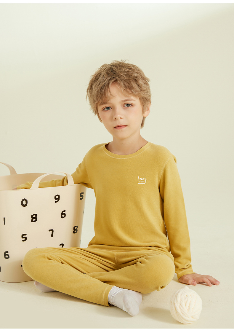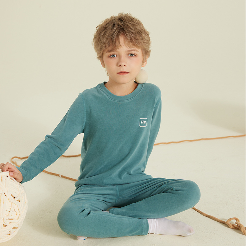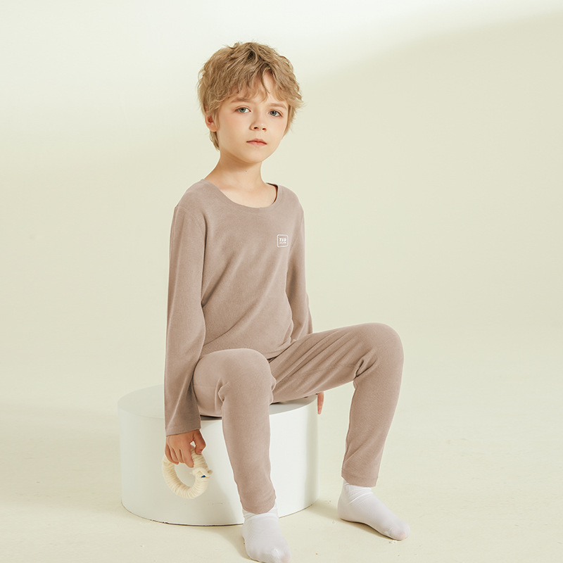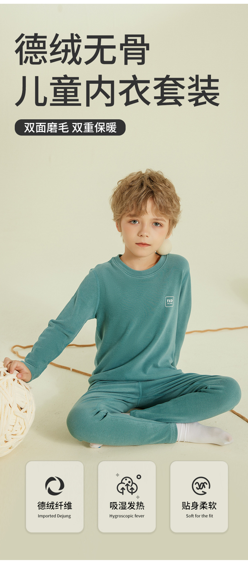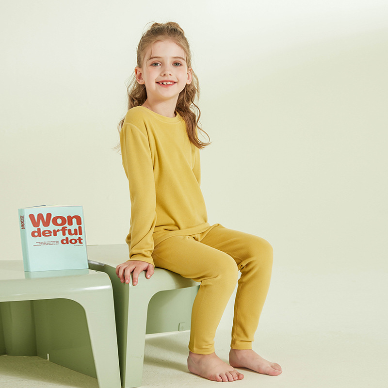 어린이용 두꺼운 보온 내의, 여아용 플리스 안감 두꺼운 잠옷, 남아용 발열 가을옷, 가을바지, 중대형 어린이 세트