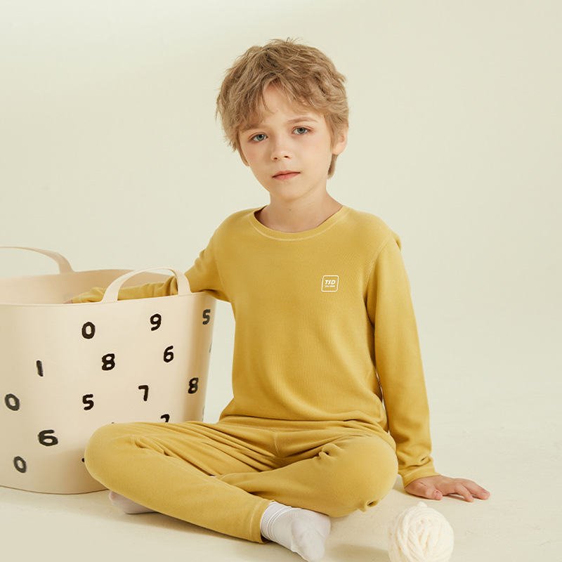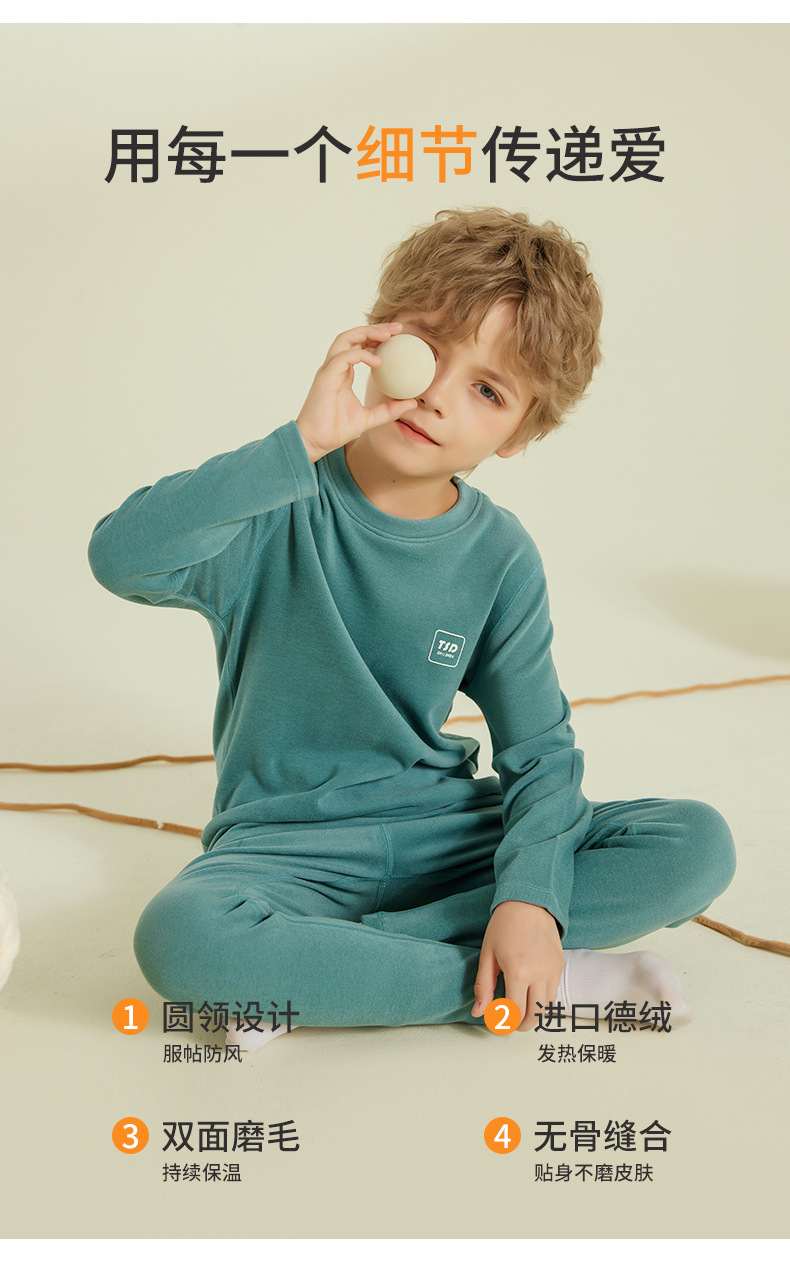 어린이용 두꺼운 보온 내의, 여아용 플리스 안감 두꺼운 잠옷, 남아용 발열 가을옷, 가을바지, 중대형 어린이 세트스토어 가기