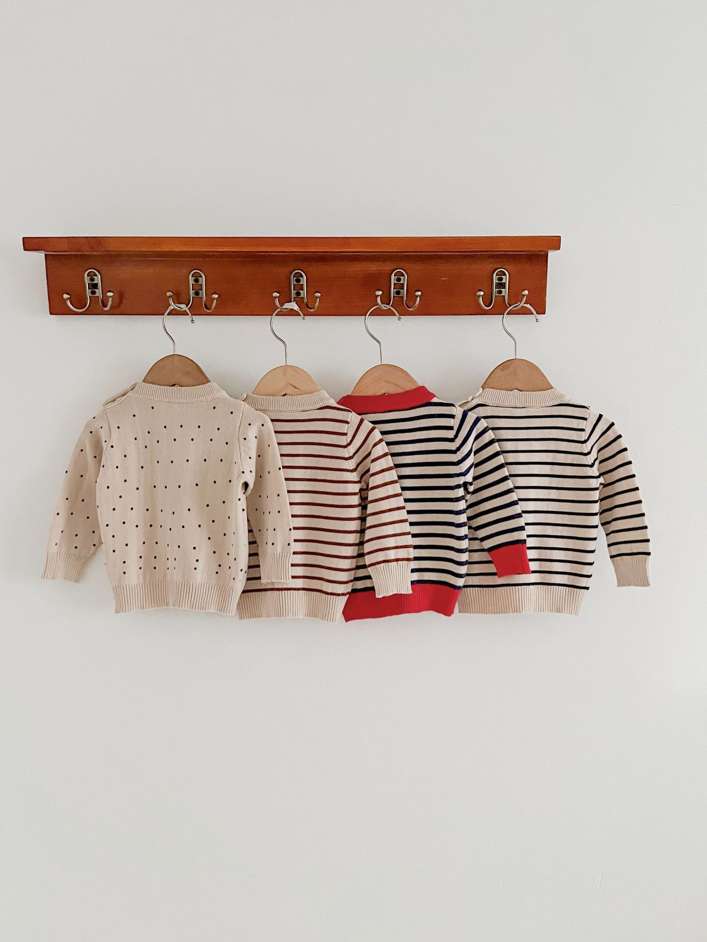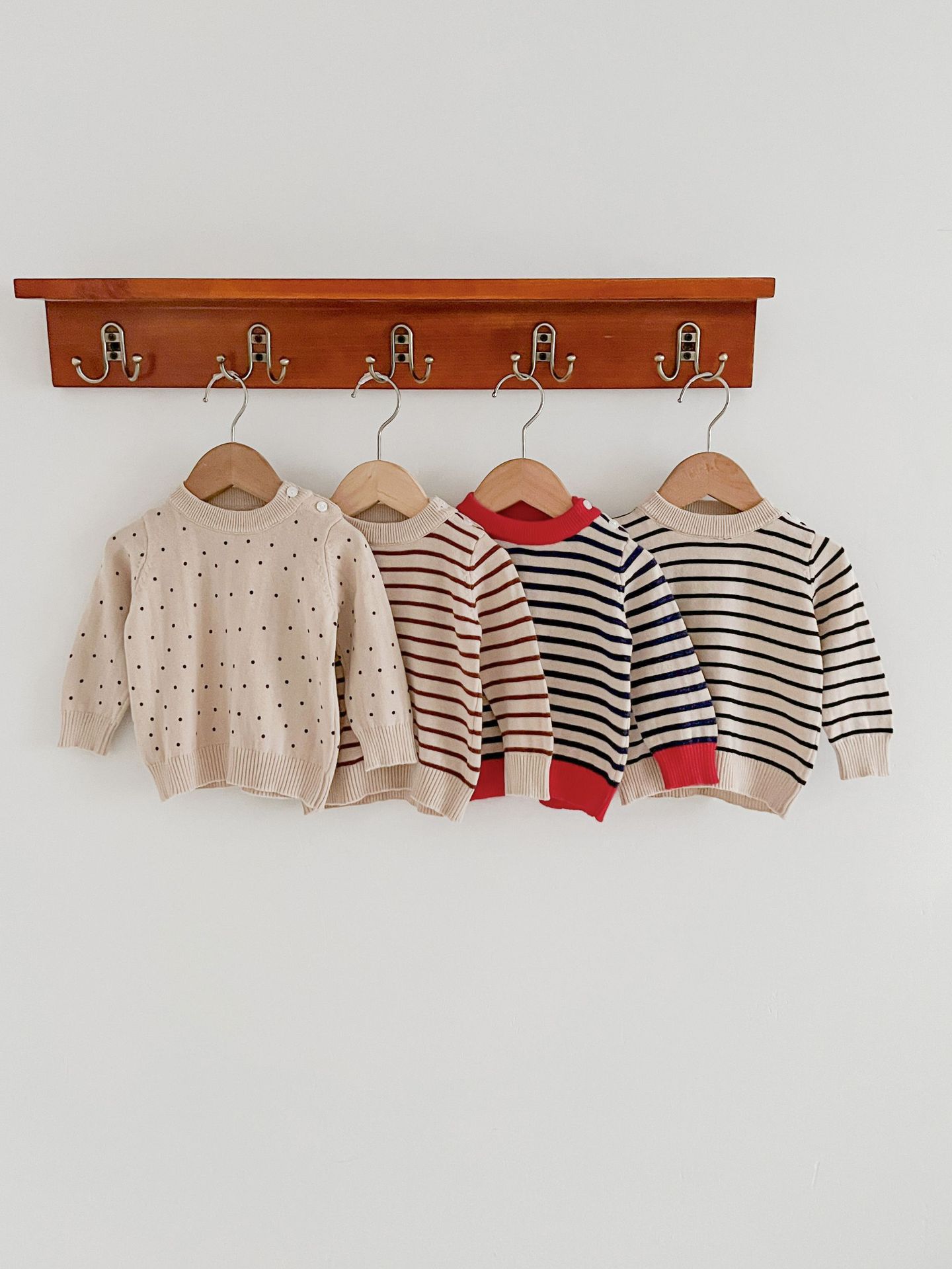 한국 스타일 아기 니트 스웨터 소년과 소녀 아기 라운드 넥 웨스턴 스타일 스트라이프 웨이브 도트 베이스 셔츠 신생아 코튼 탑스토어 가기