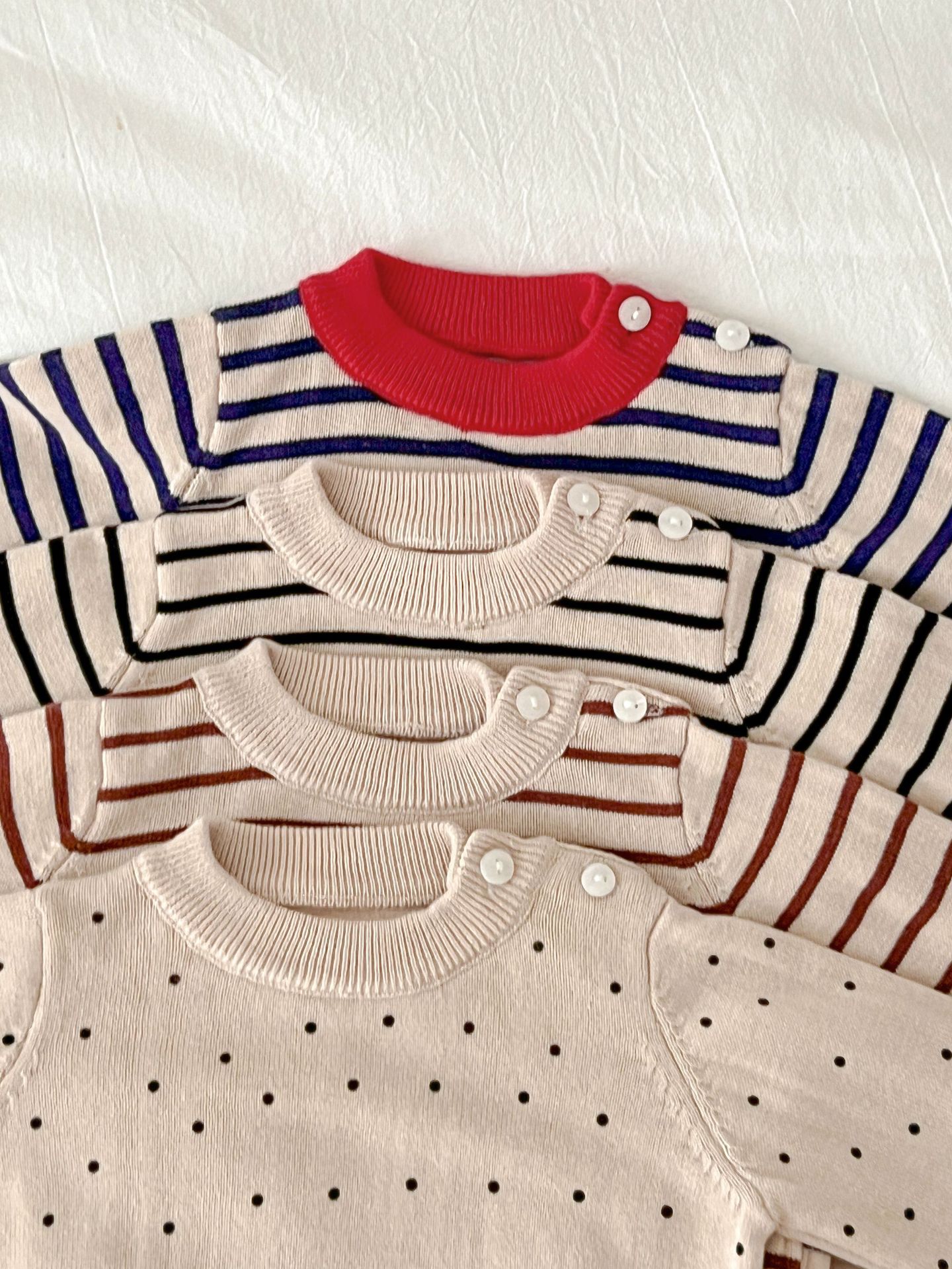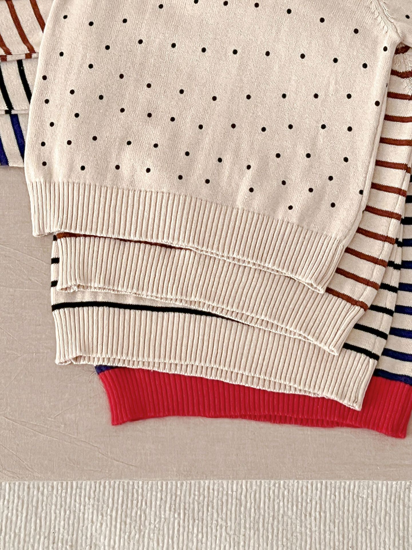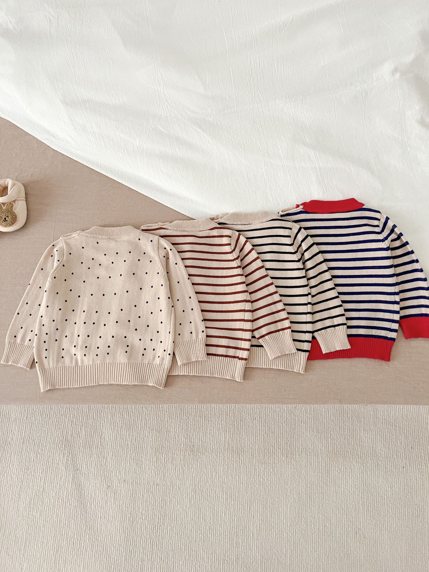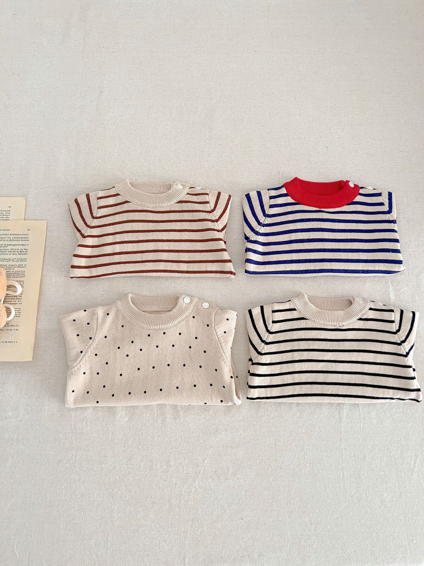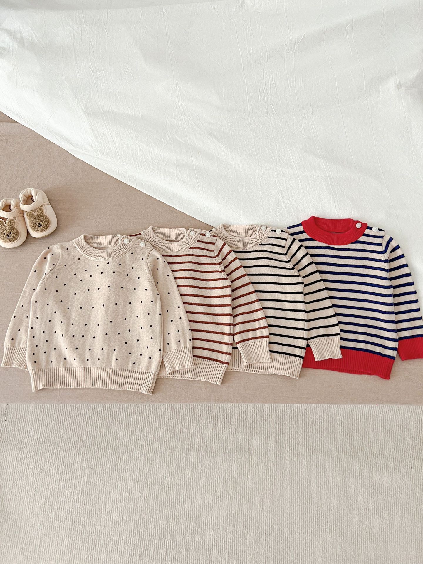 한국 스타일 아기 니트 스웨터 소년과 소녀 아기 라운드 넥 웨스턴 스타일 스트라이프 웨이브 도트 베이스 셔츠 신생아 코튼 탑