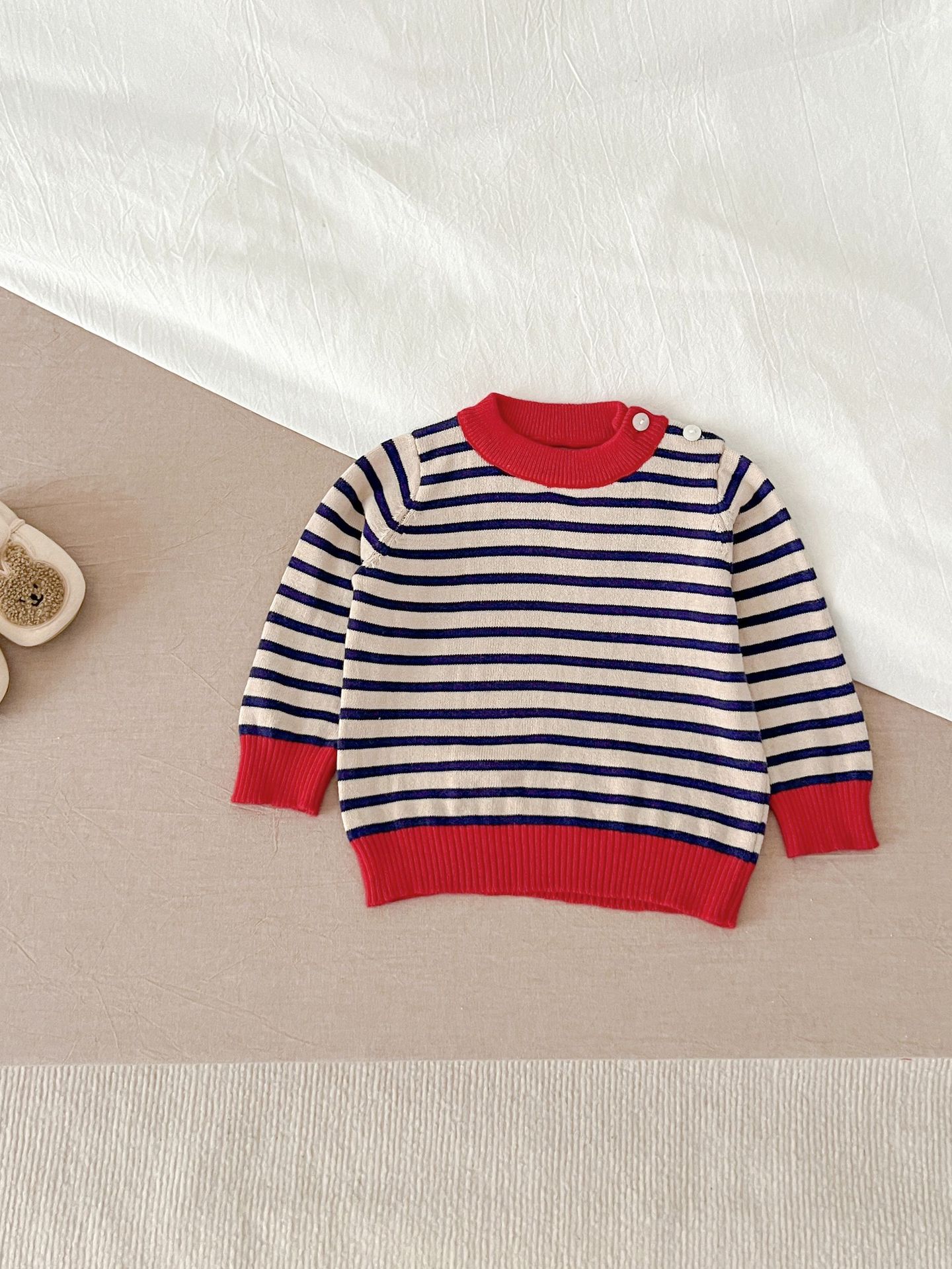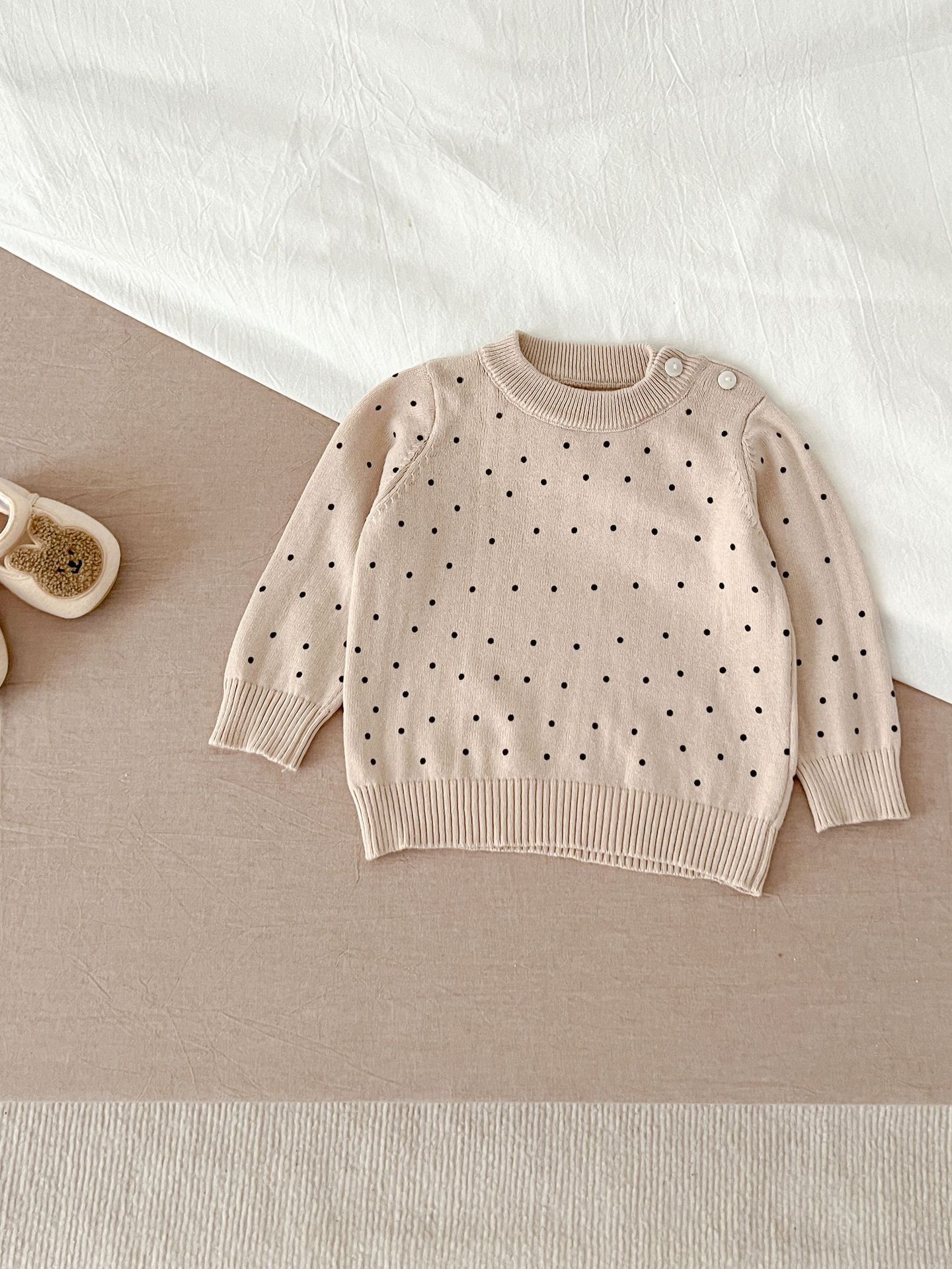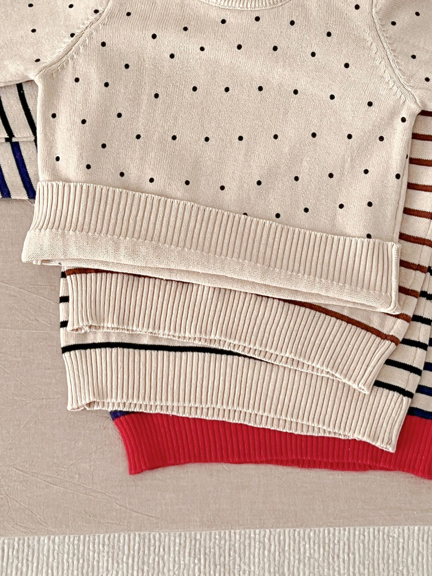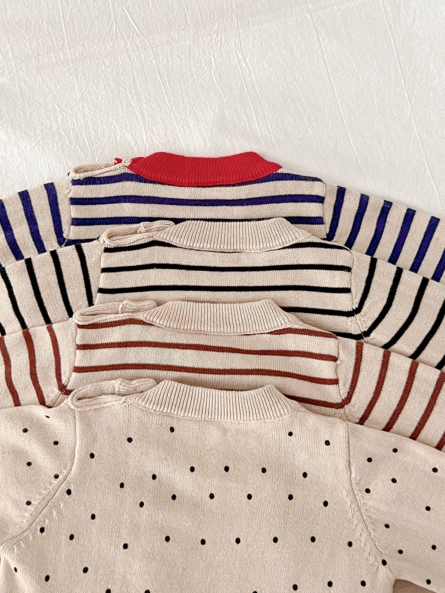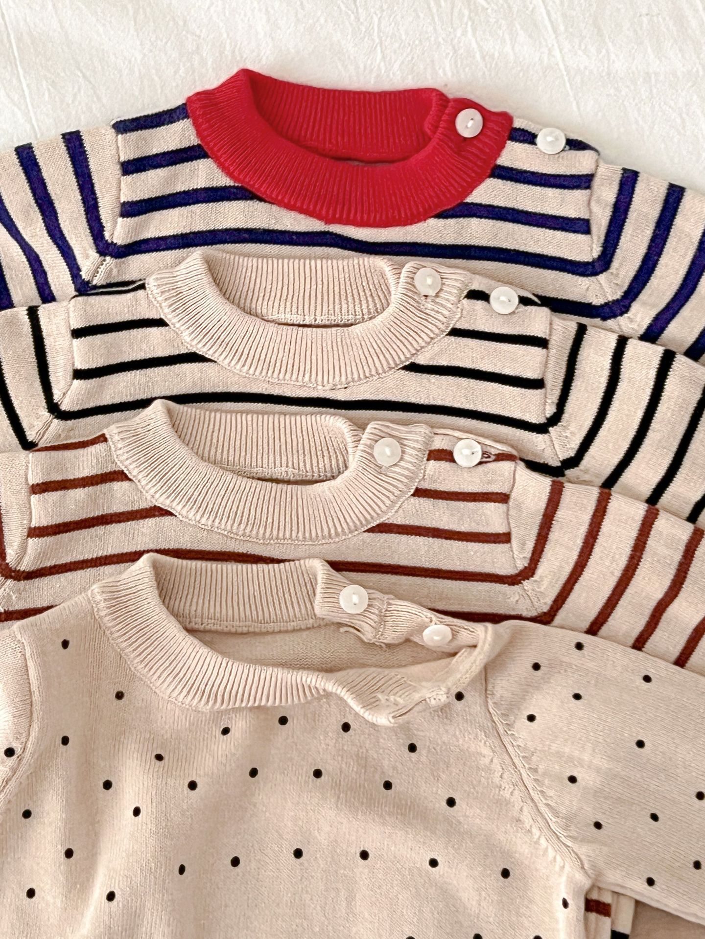 한국 스타일 아기 니트 스웨터 소년과 소녀 아기 라운드 넥 웨스턴 스타일 스트라이프 웨이브 도트 베이스 셔츠 신생아 코튼 탑