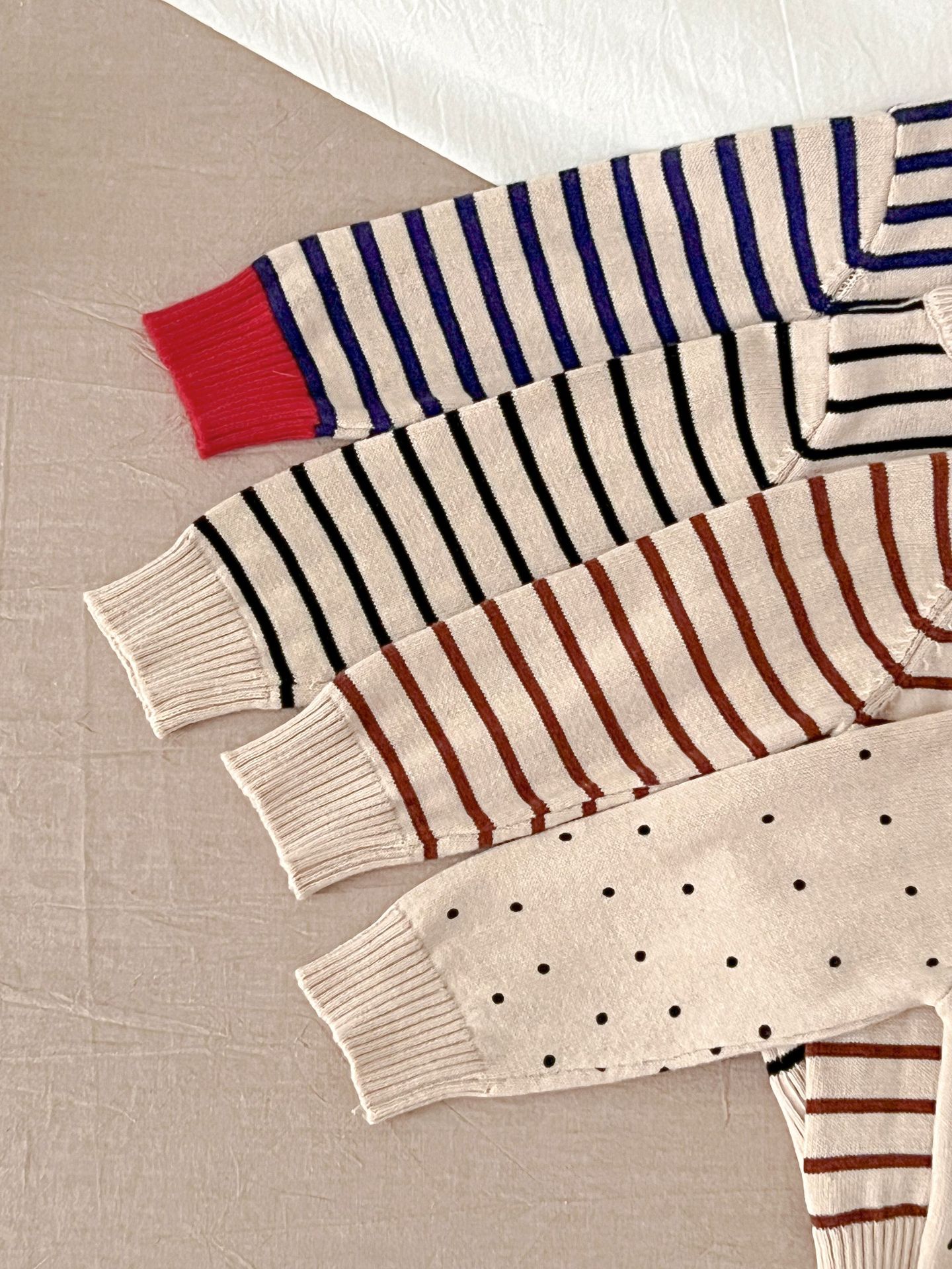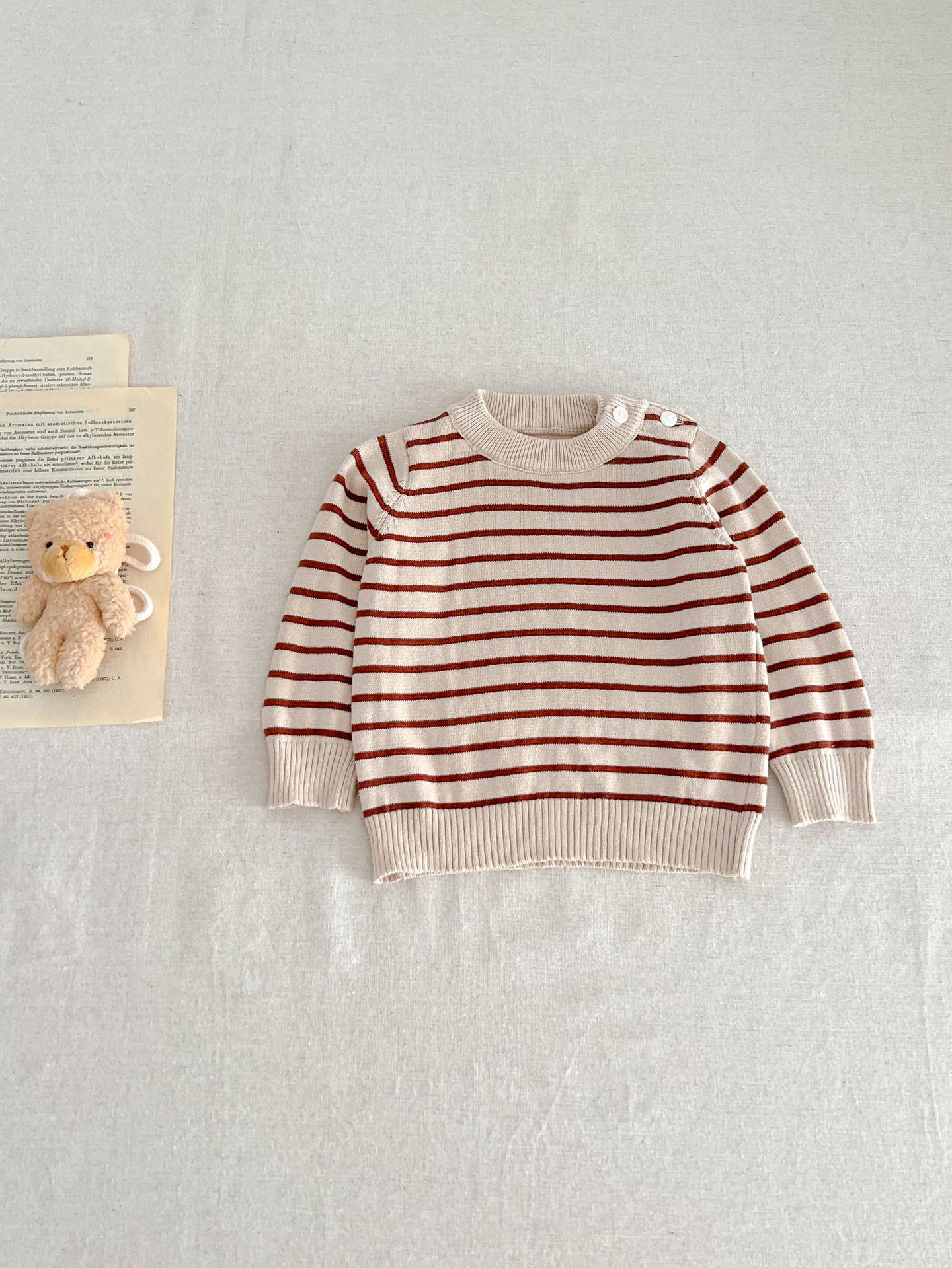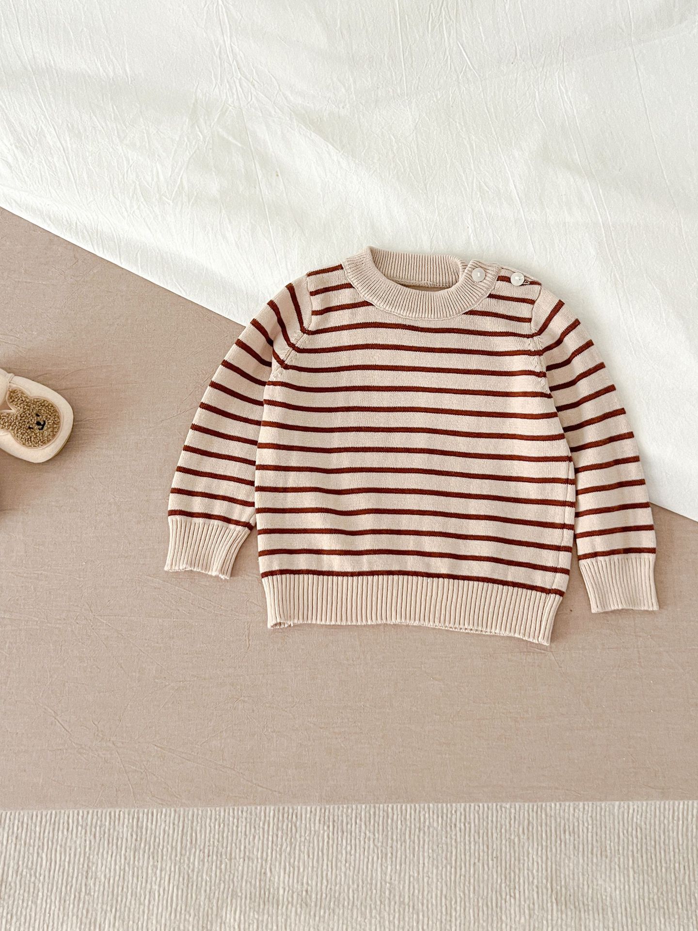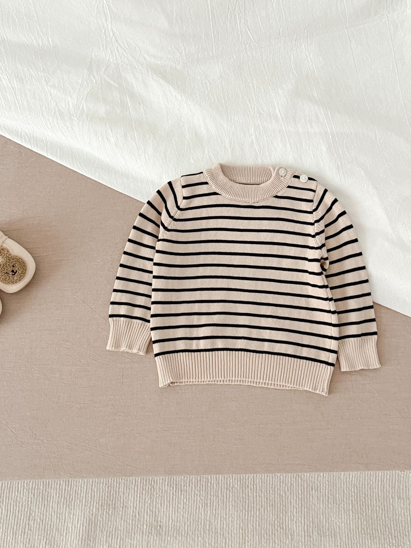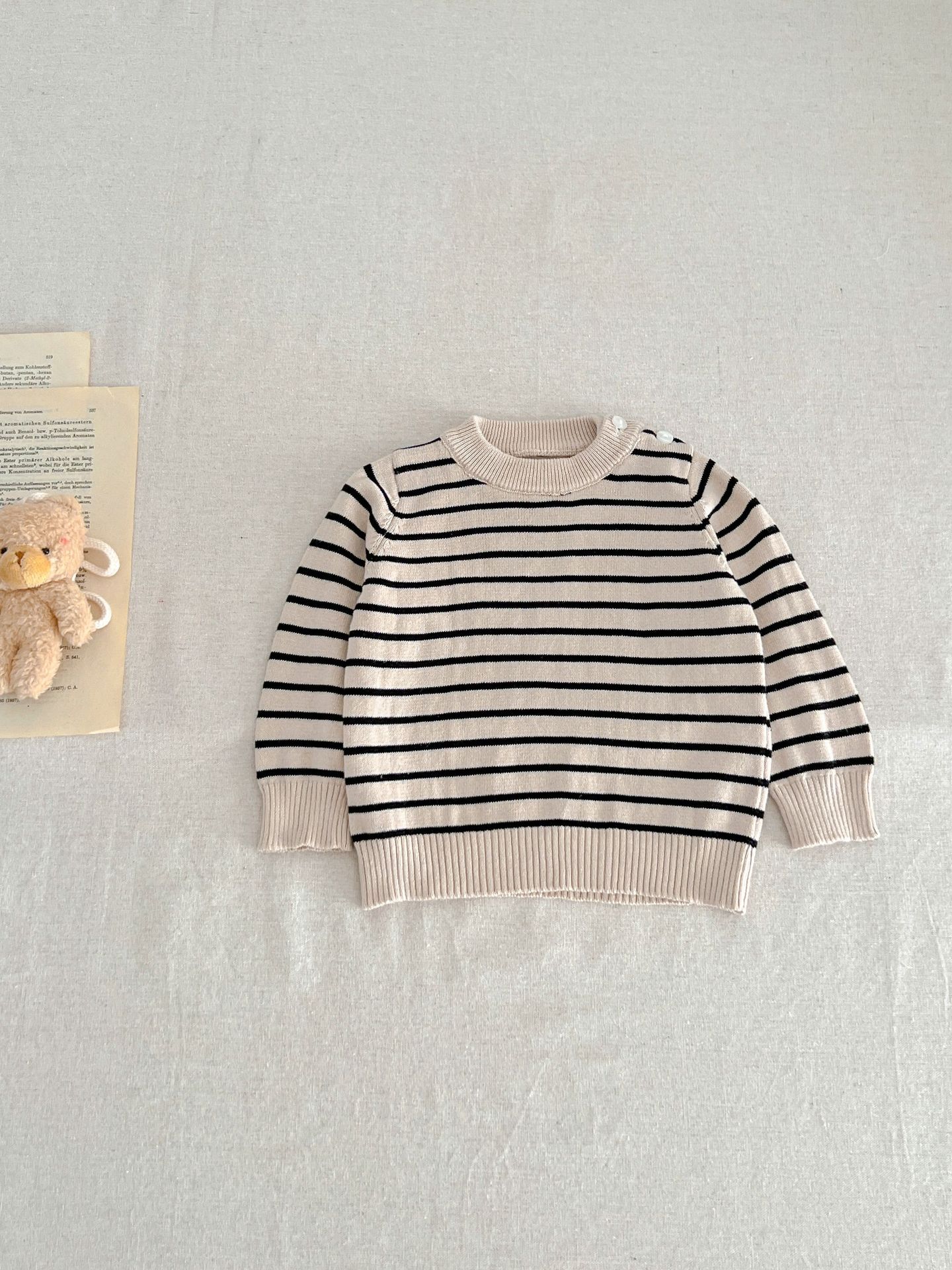 한국 스타일 아기 니트 스웨터 소년과 소녀 아기 라운드 넥 웨스턴 스타일 스트라이프 웨이브 도트 베이스 셔츠 신생아 코튼 탑