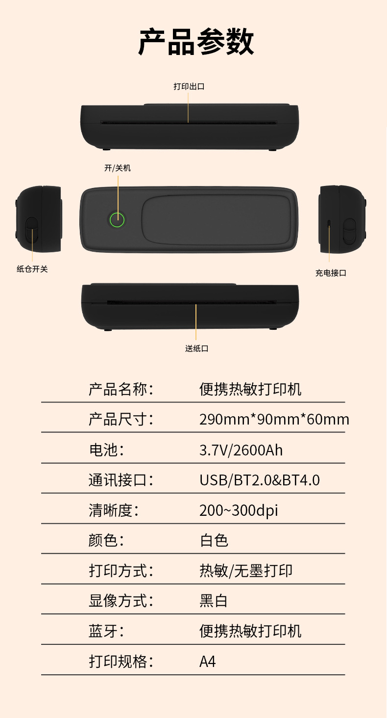 미니 프린터 프린터는 휴대폰에 무선으로 연결할 수 있습니다. A4 크로스보더 휴대용 감열식 프린터 소형 가정용스토어 가기