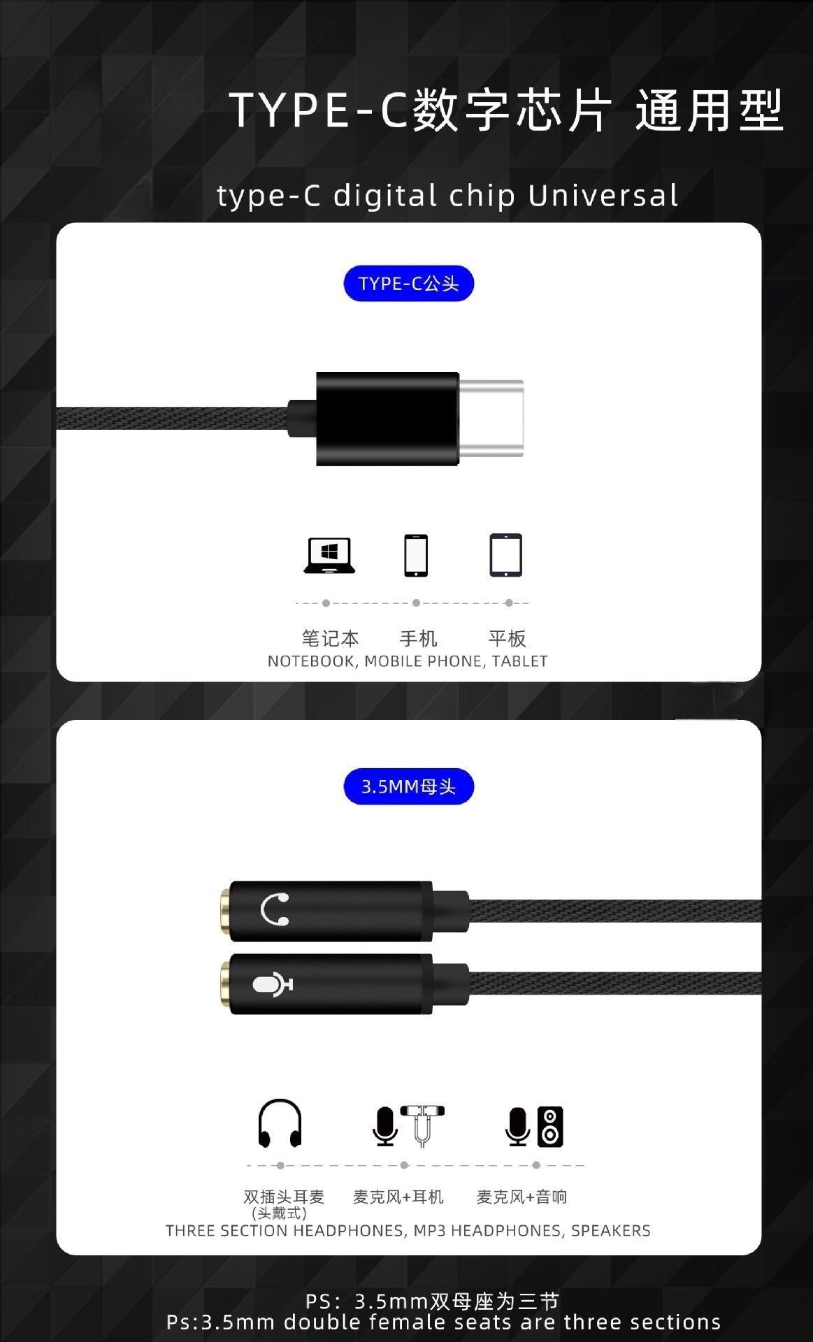 유형-c 삼성 구글 dac 어댑터 화웨이 1 분 2 컴퓨터 헤드셋 마이크 3.5 오디오 케이블에 적용스토어 가기