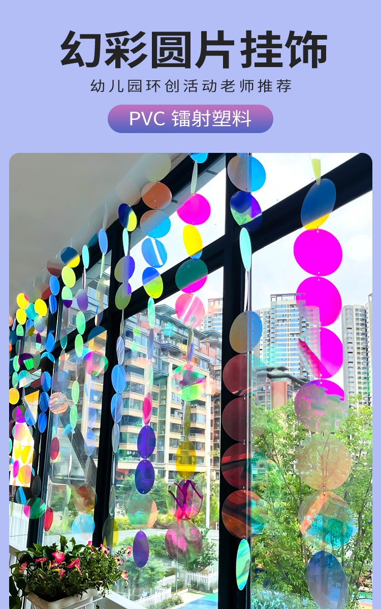 Pvc 다채로운 필름 레이저 매직 컬러 필름 투명 컬러 라운드 플라스틱 필름 A4 유치원 반지 참 소재