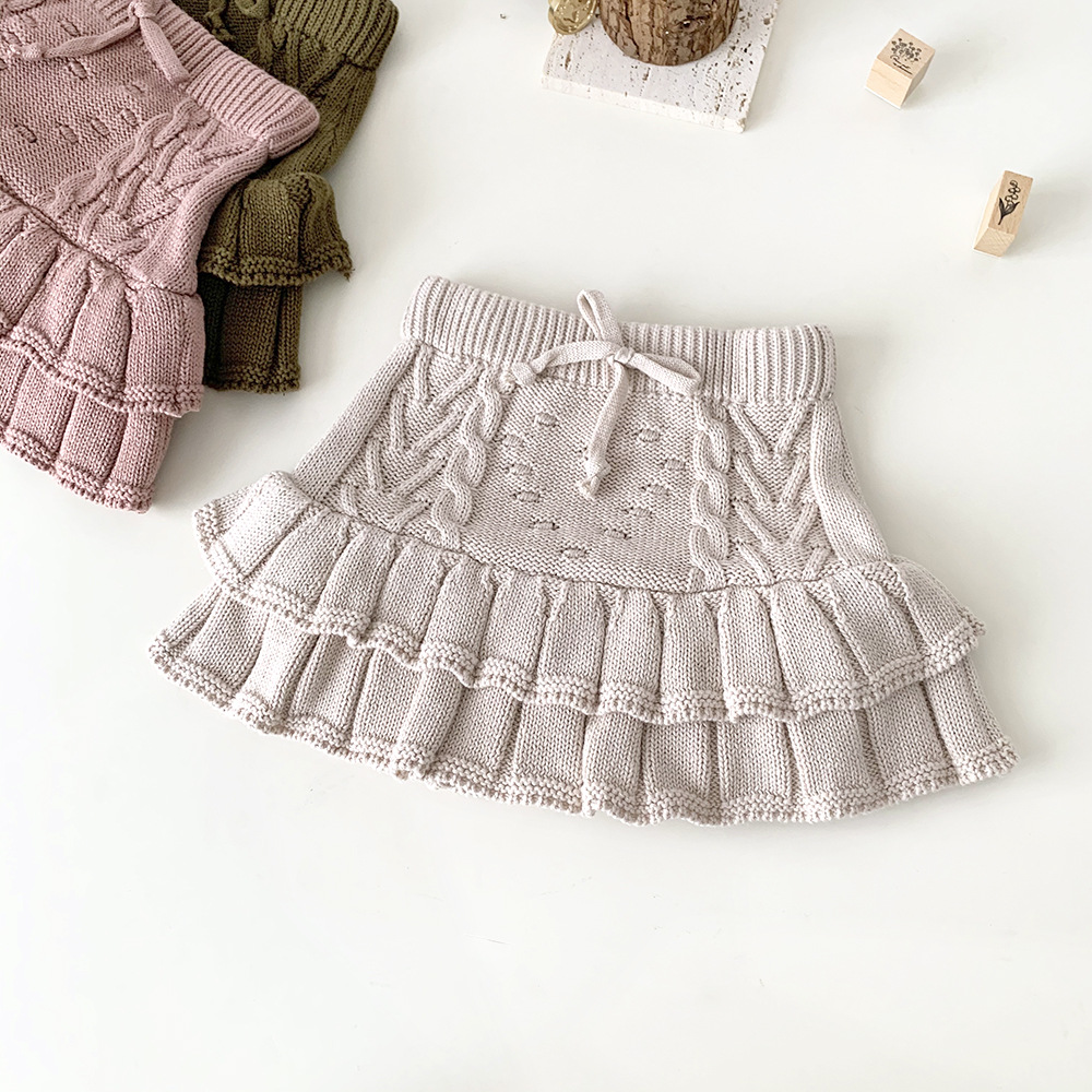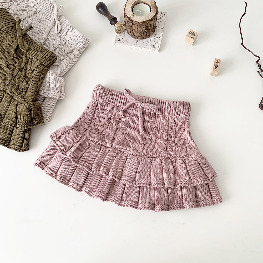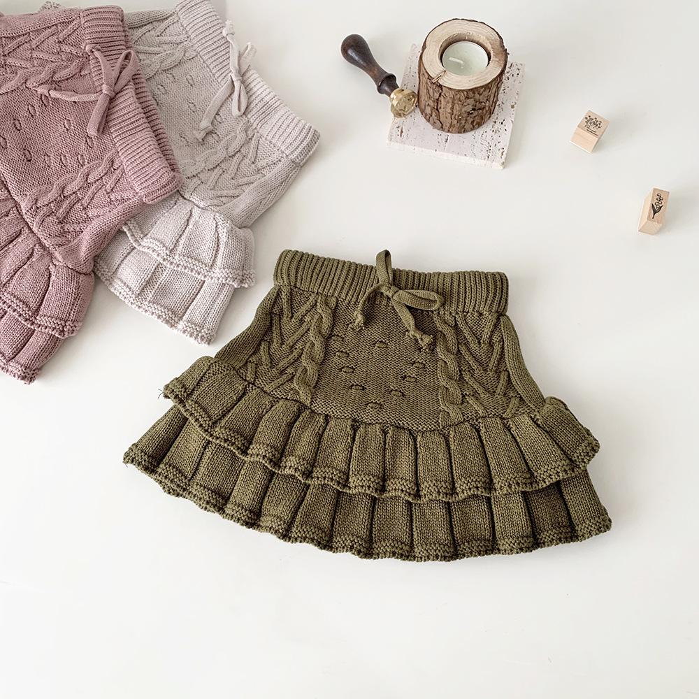 Cutemily 가을과 겨울 아기 소녀의 두꺼운 모직 반바지 팬 스커트 여성용 보물 자카드 가짜 투피스 연잎 바지 스커트