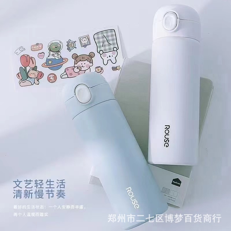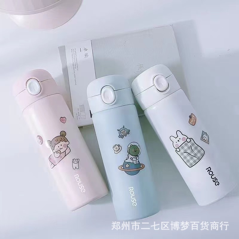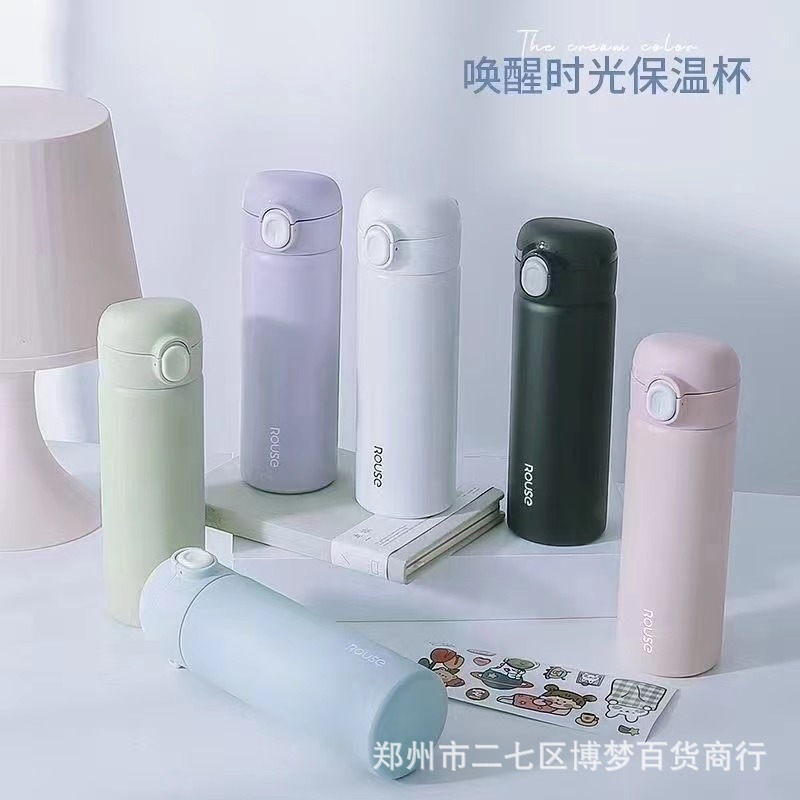 귀여운 베리 걱정 보온병 플랩 커버 스트레이트 마시는 입 스타일 높은 색상 값 남성과 여성을위한 대용량 304 스테인레스 스틸 절연스토어 가기