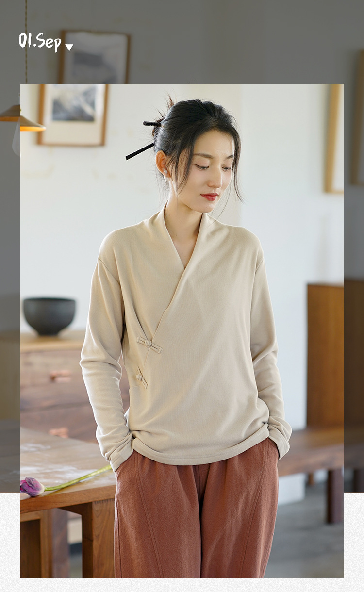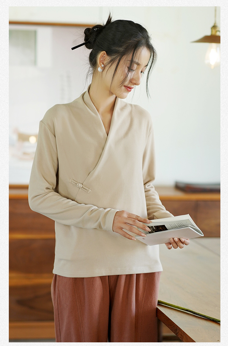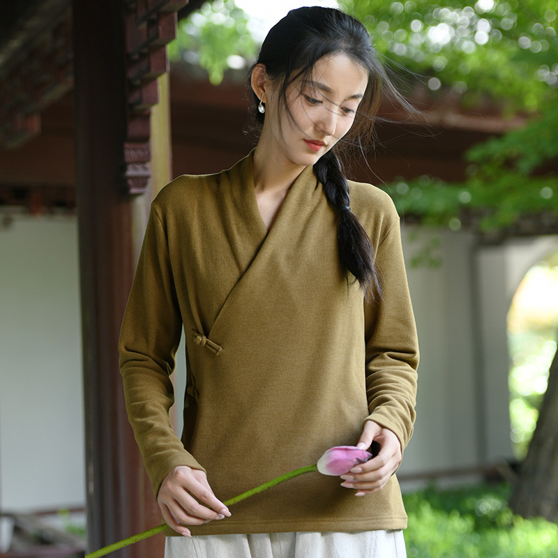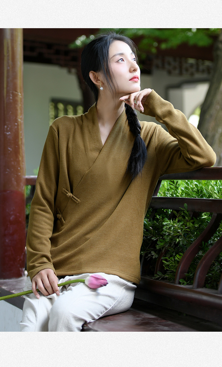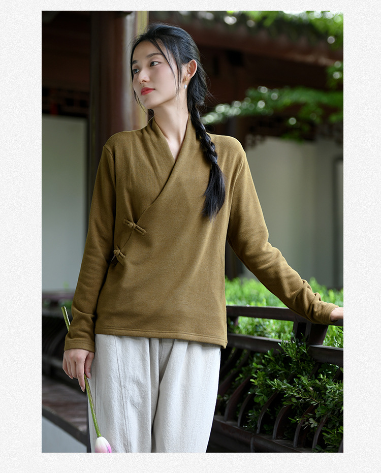 새로운 중국 스타일 여성의 2023 가을과 겨울 새로운 니트 스웨터 여성의 중국 스타일 경사 플래켓 버튼 레트로 벨벳 탑