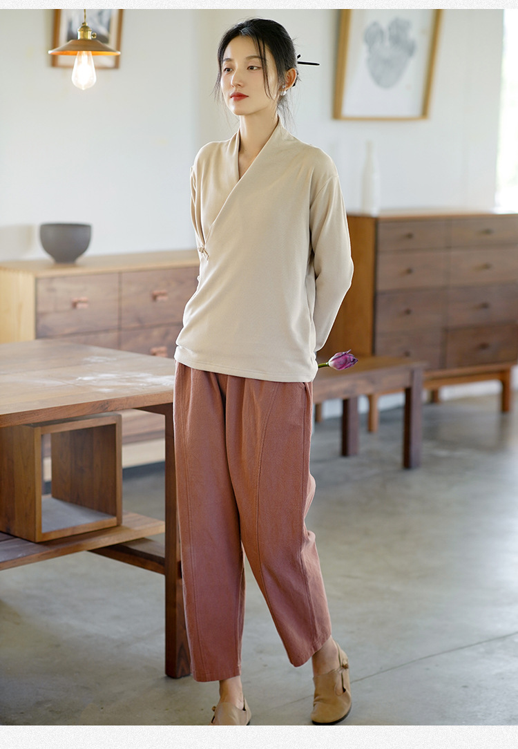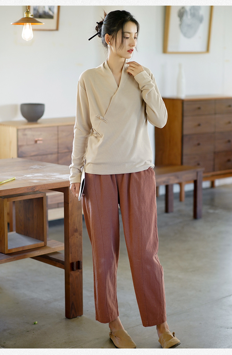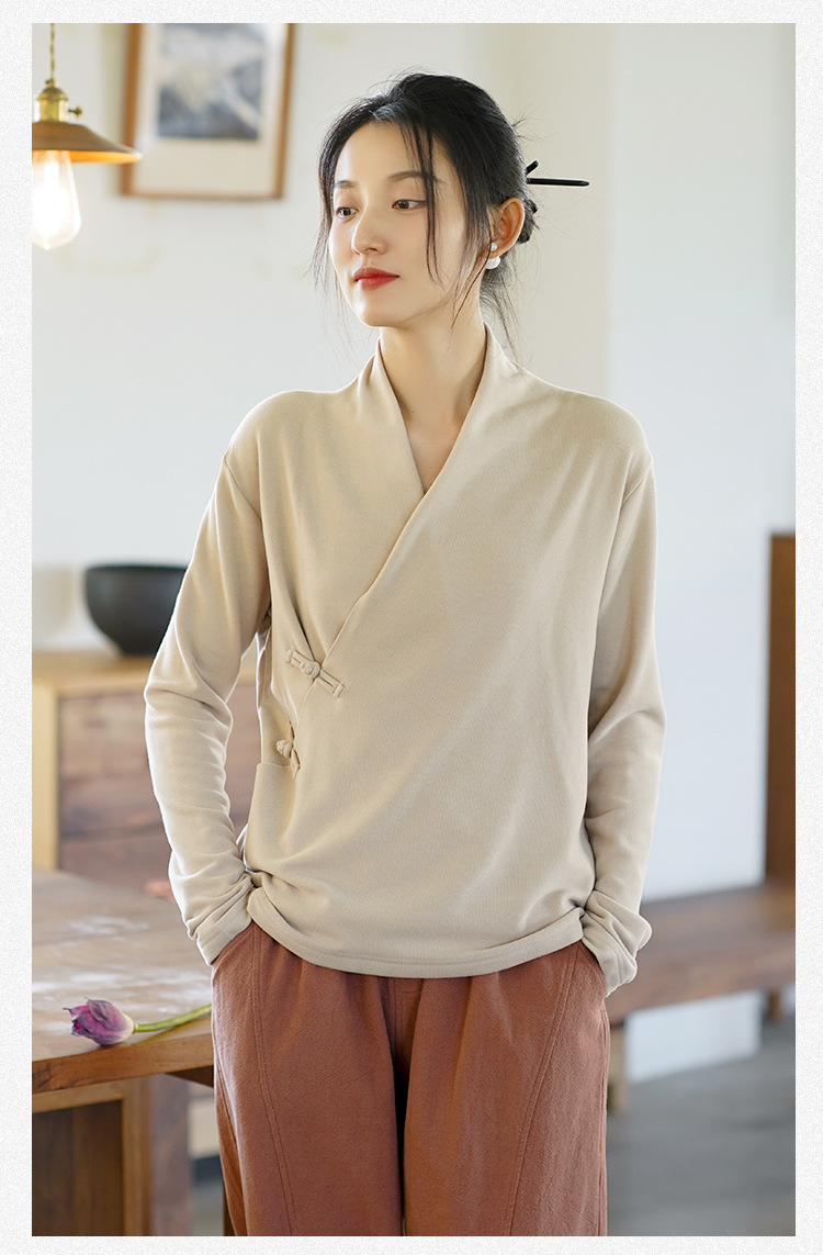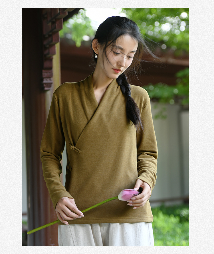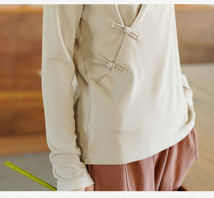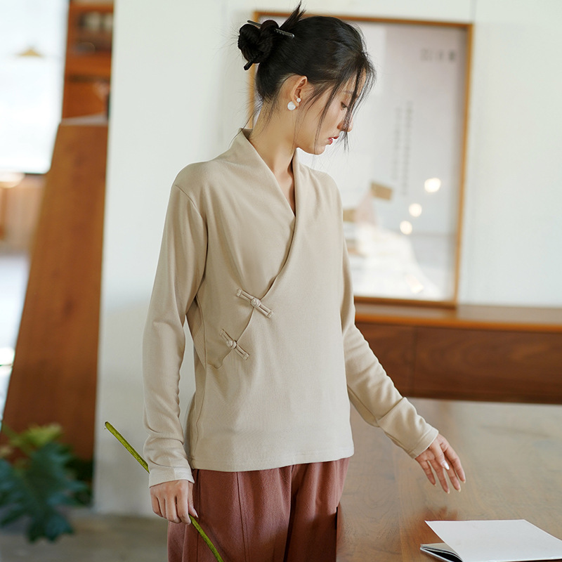 새로운 중국 스타일 여성의 2023 가을과 겨울 새로운 니트 스웨터 여성의 중국 스타일 경사 플래켓 버튼 레트로 벨벳 탑