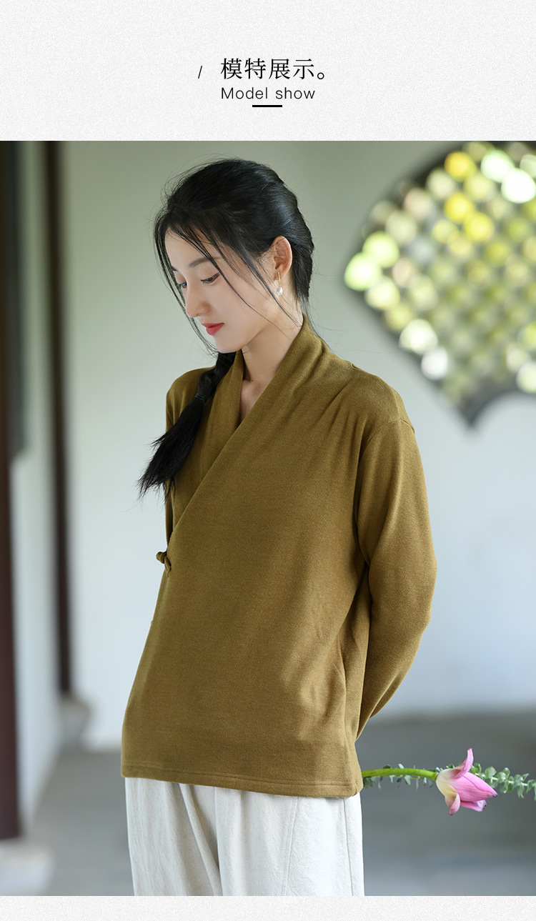 새로운 중국 스타일 여성의 2023 가을과 겨울 새로운 니트 스웨터 여성의 중국 스타일 경사 플래켓 버튼 레트로 벨벳 탑스토어 가기