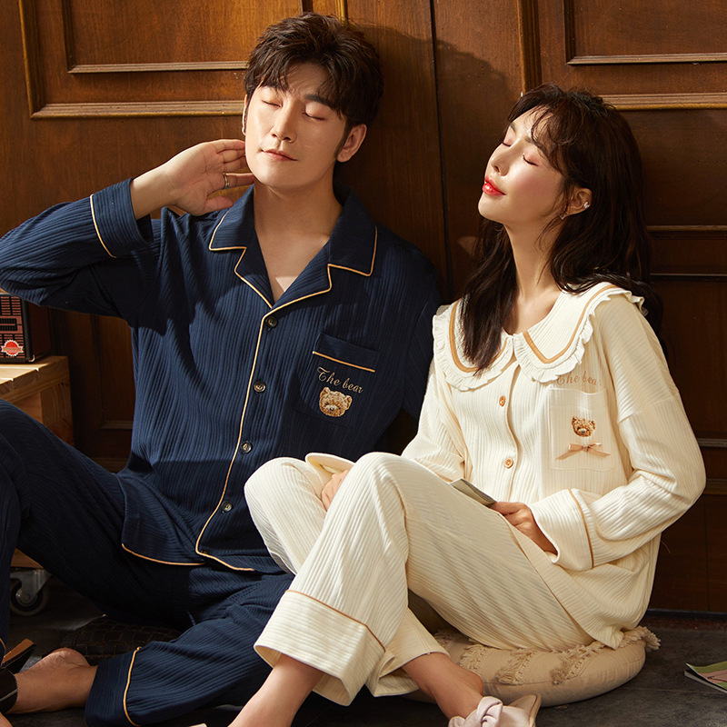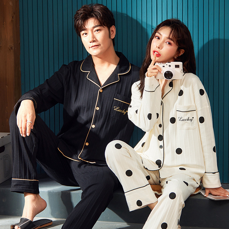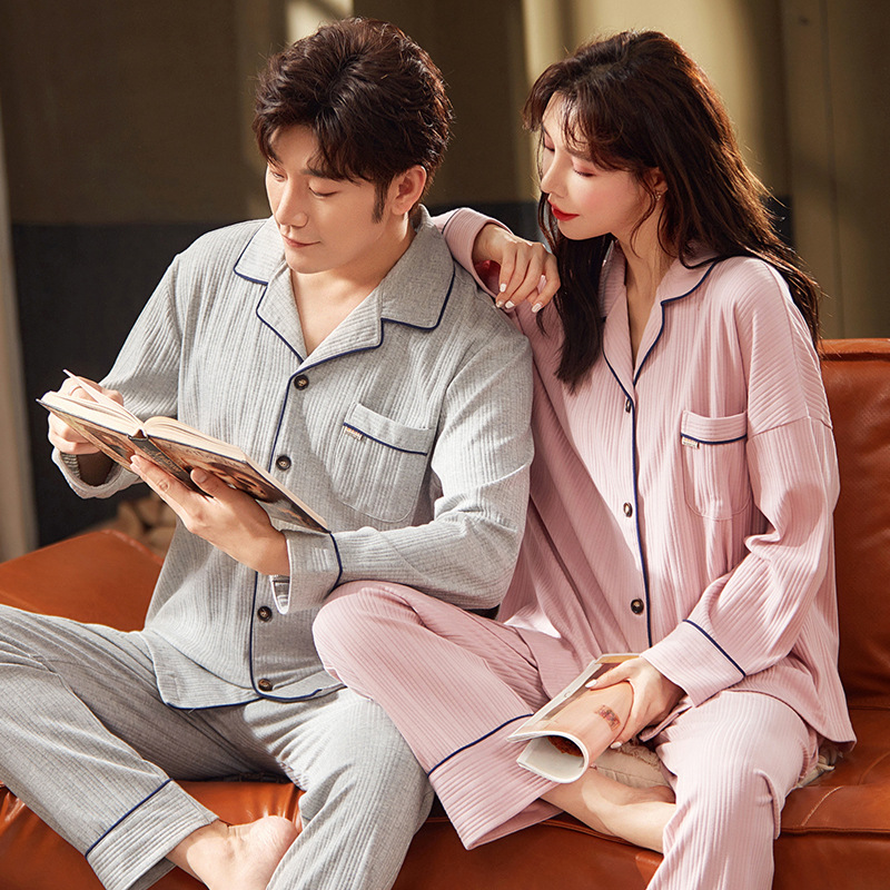커플 잠옷 봄과 가을 캐주얼 남성과 여성의 긴 소매 가을과 겨울 2023 새로운 가디건 가정복 가을