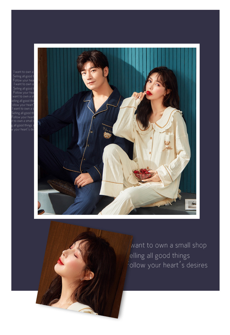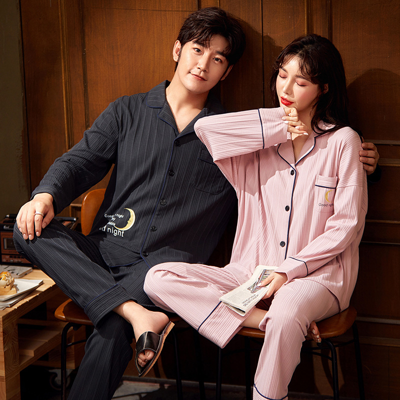 커플 잠옷 봄과 가을 캐주얼 남성과 여성의 긴 소매 가을과 겨울 2023 새로운 가디건 가정복 가을스토어 가기