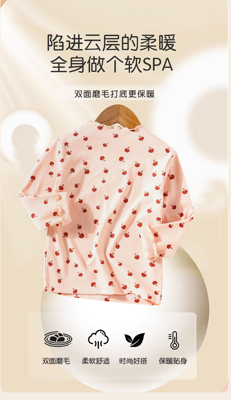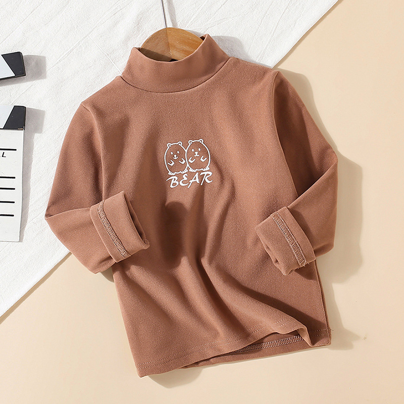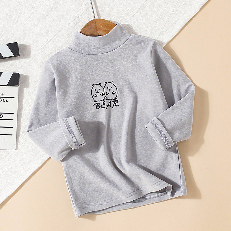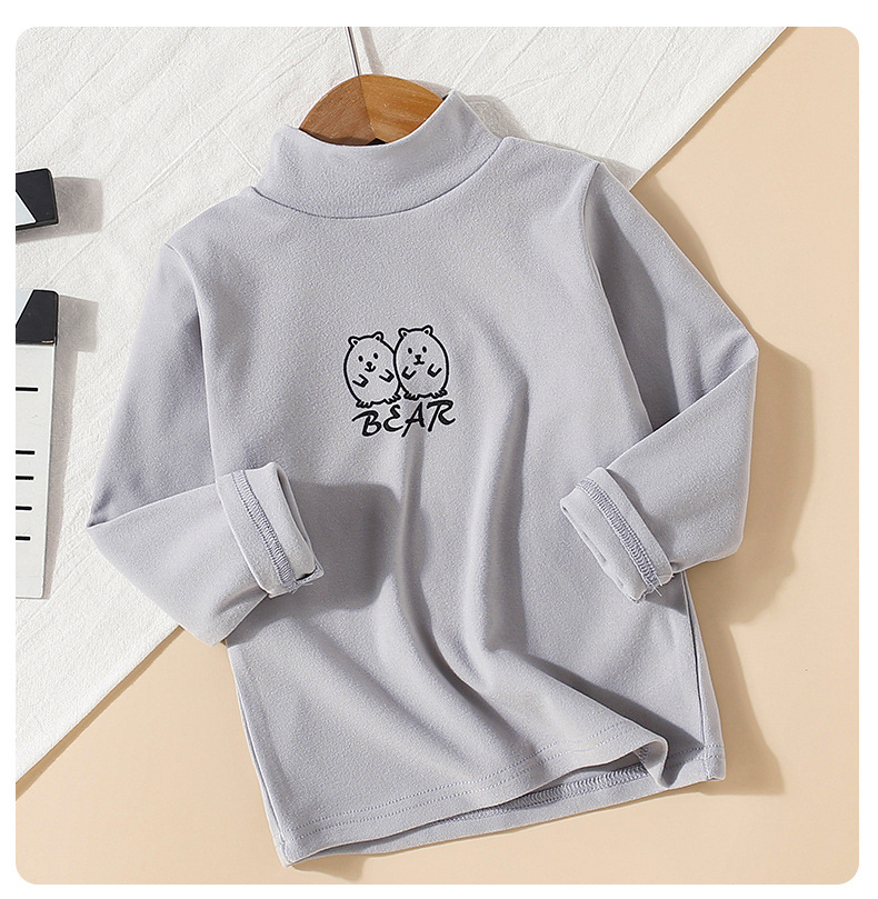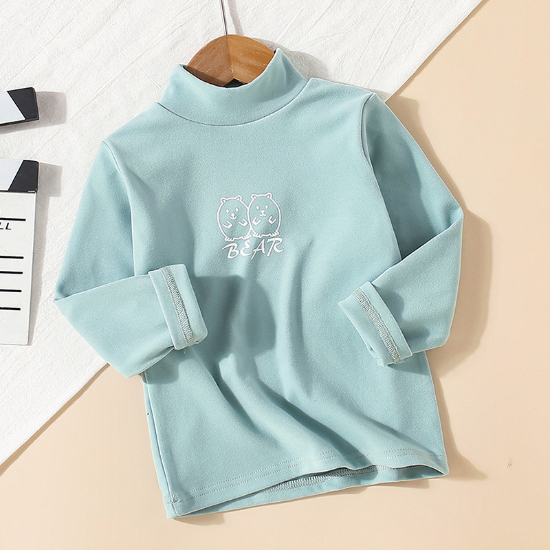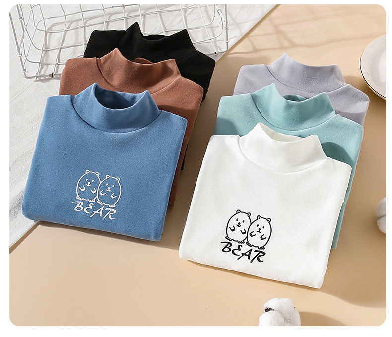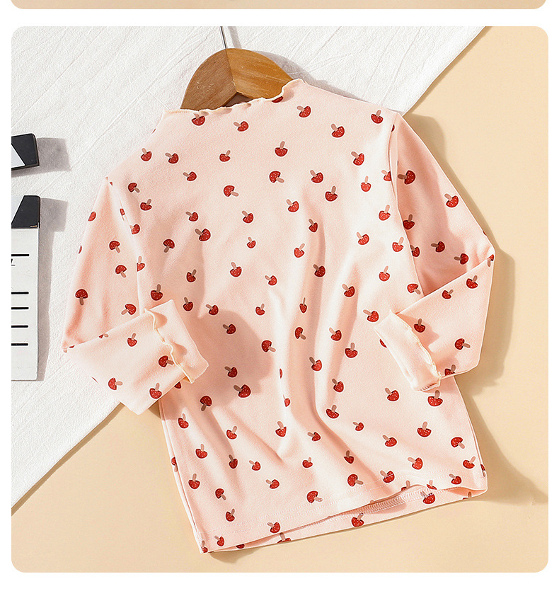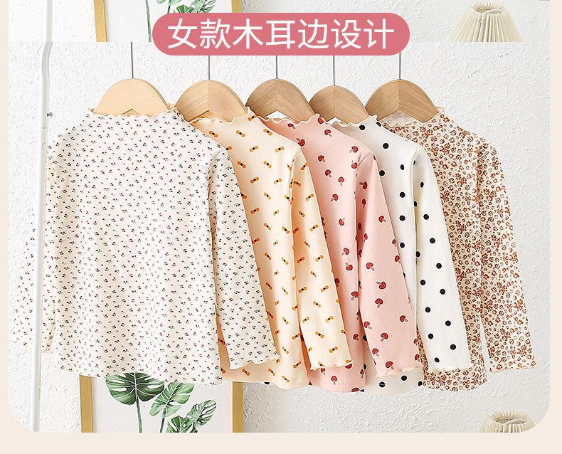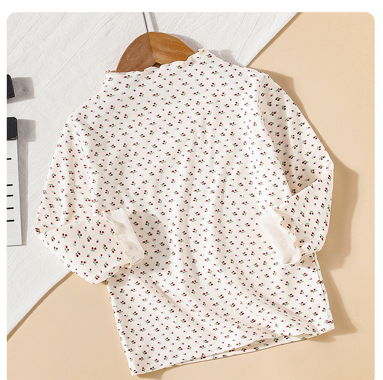 2023 아동용 양면 플리스 베이스 셔츠 남아 캔디 컬러 하이넥 여아 싱글 피스 탑 플로럴 프린트와 귀테 하이넥스토어 가기