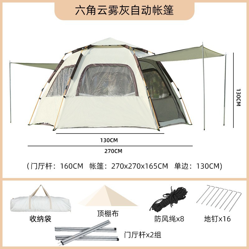 텐트 야외 자동 캠핑 차양 여행 육각형 5-8인용 캠핑 모기장 안전한 탄소섬유 폴 없음스토어 가기